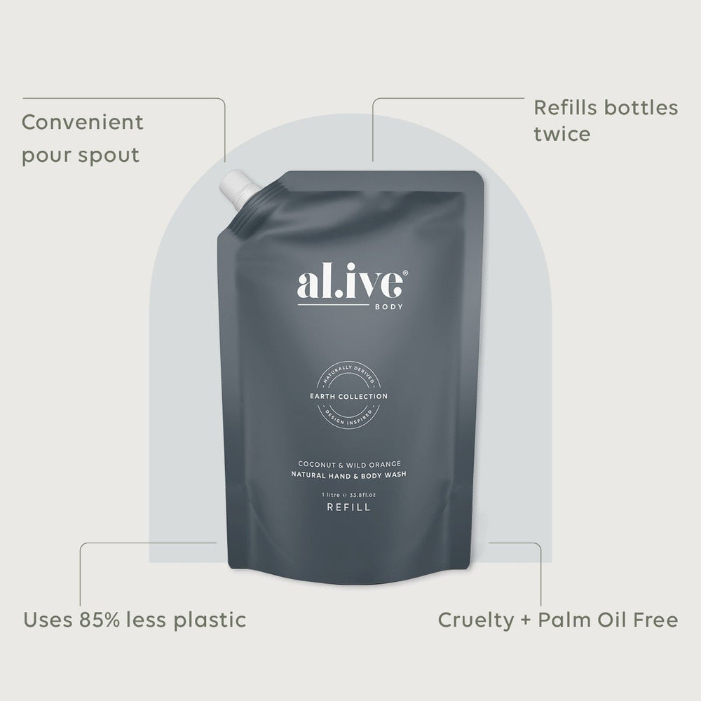 Al.ive Body 1 LTR WASH REFILL - COCONUT & WILD ORANGE