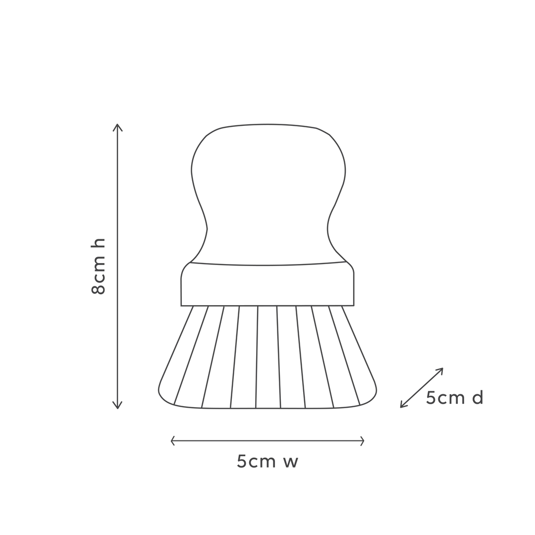 The dish brush handle is made from bamboo, and the bristles are sisal and palm.