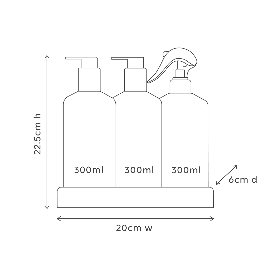 Our 300ml bottles are 100% recyclable and made from HDPE plastic. Our trays, made from ABS plastic, are designed for durability and longevity.