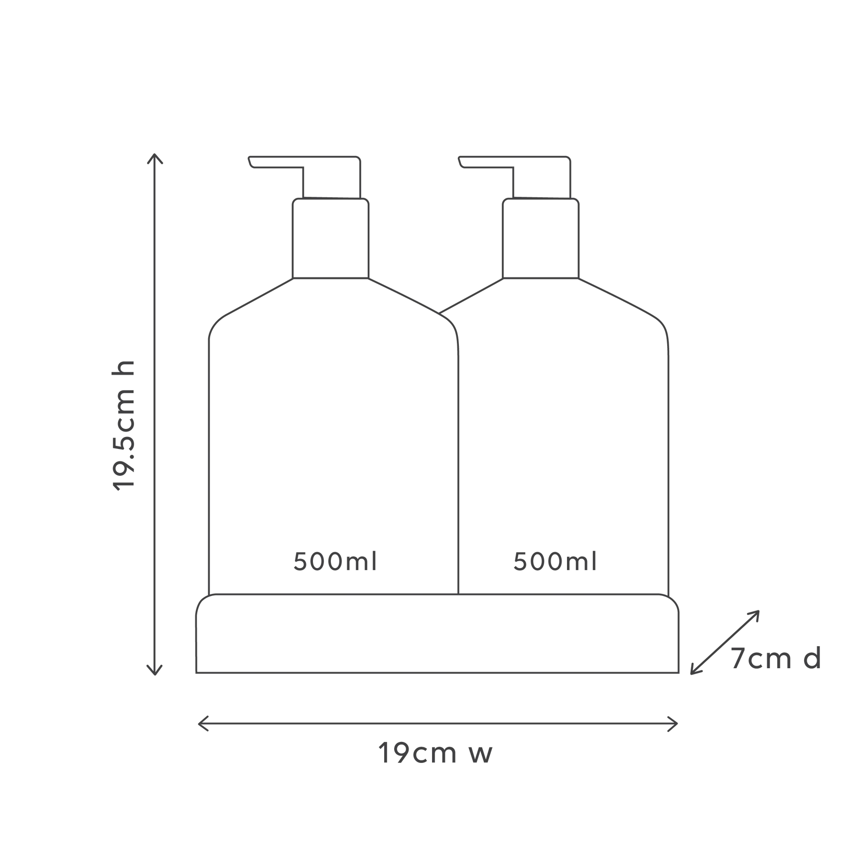 Limited edition Duo, containing a 500ml hand & body wash, 500ml hand & body lotion, matching tray, and an 80ml hand cream.