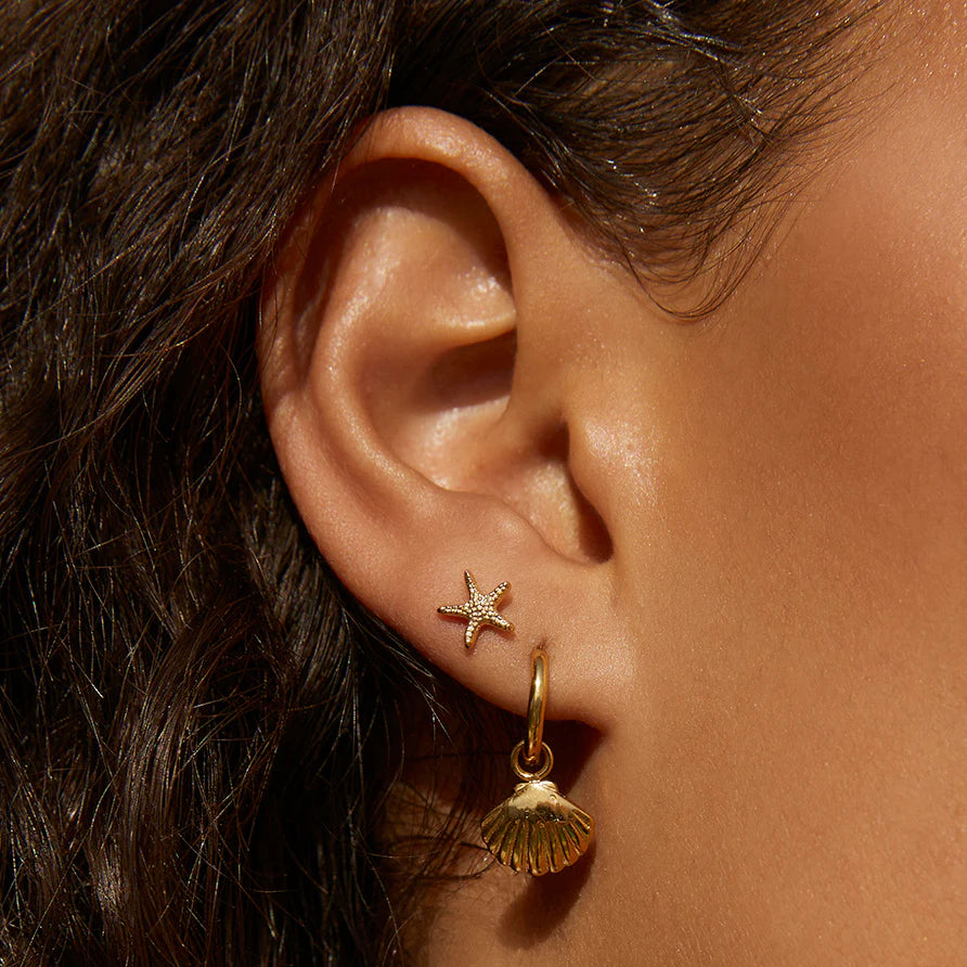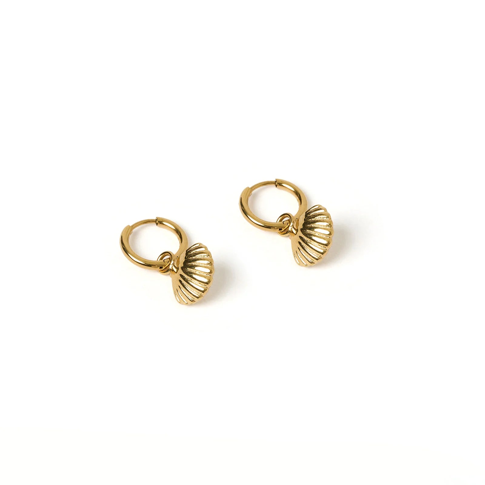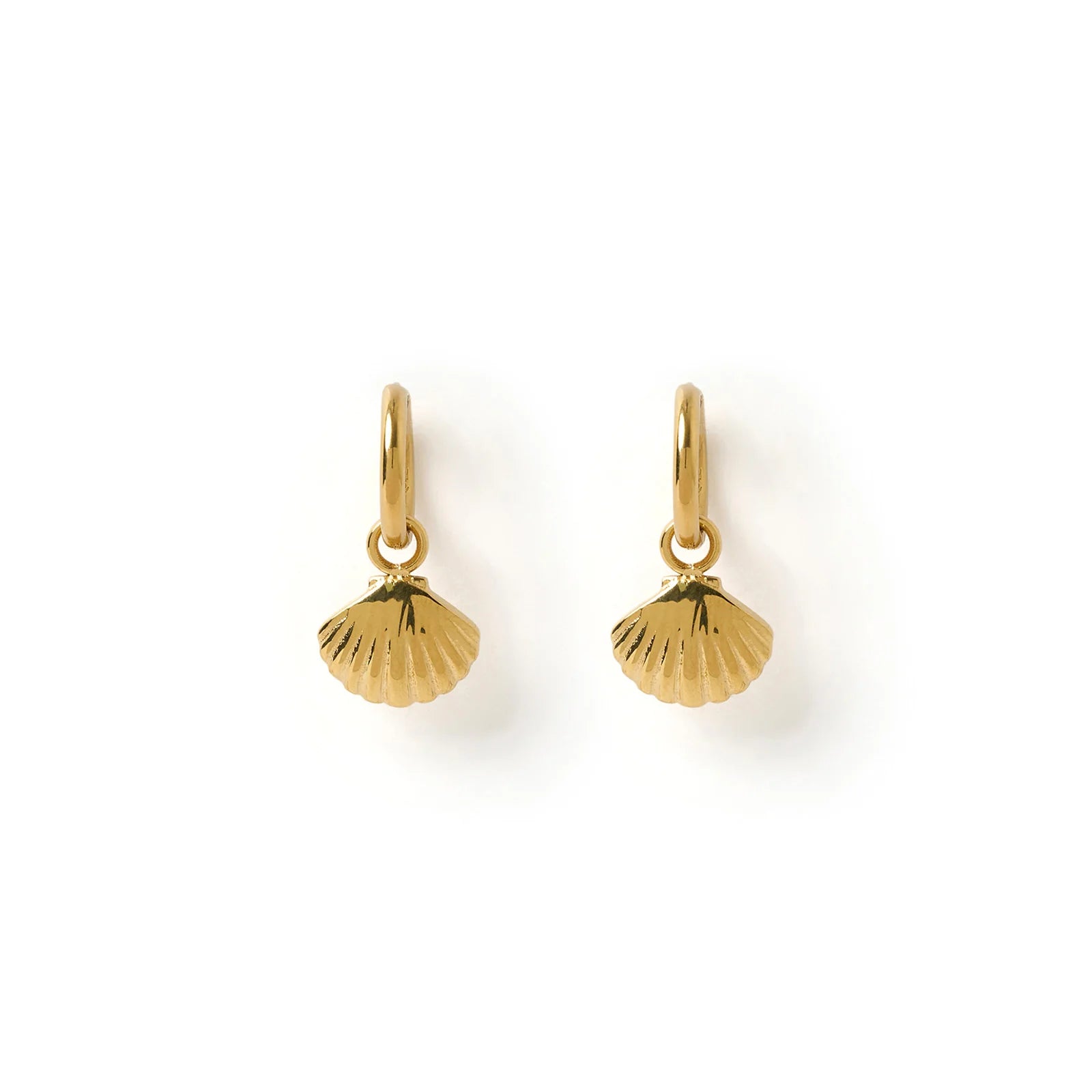 Escape to paradise with the stunning Shelli Earrings! Featuring a lovely shell charm, these elegant hoops style perfectly with everyday resort wear.