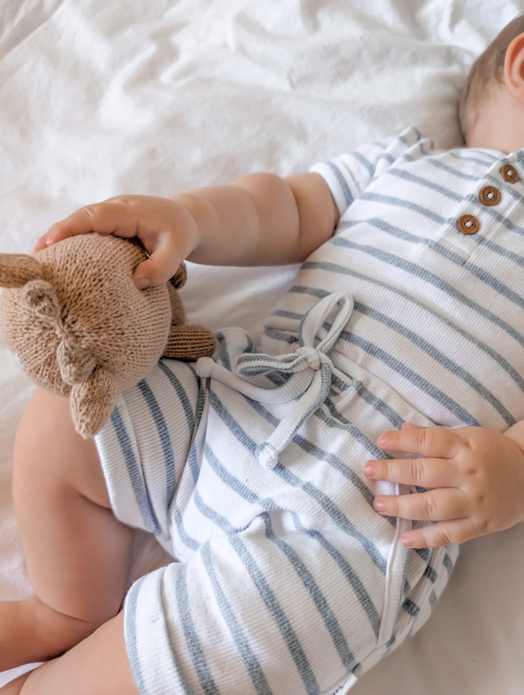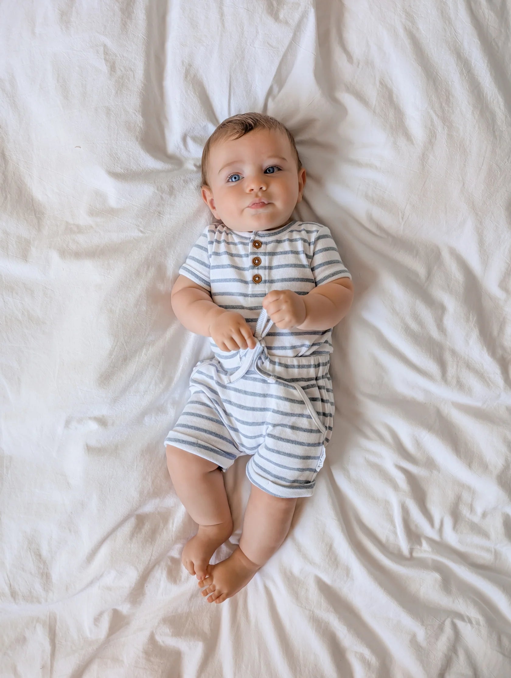 Aster & Oak's Blue Stripe Rib Henley top is a comfy basic. Crafted from certified organic cotton, which is soft and stretchy, it features a small pocket for those little treasures.