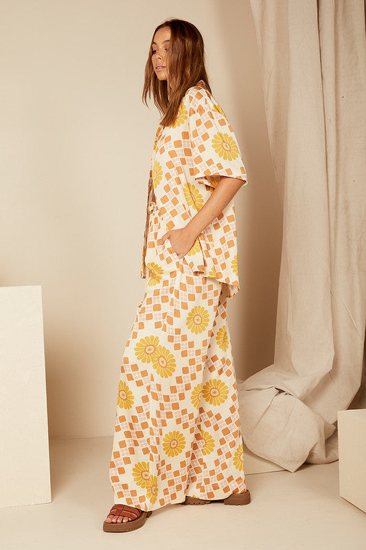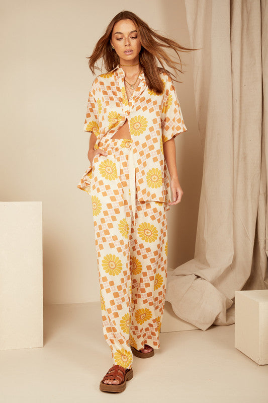 We love a matching set and the creamy tones found in Bohemian Traders Sprial Lounging Pant make this one a wardrobe essential. Made from luxurious moss-satin, it has a comfortable, slightly loose fit. Wear yours back with the matching shirt and tan accessories.