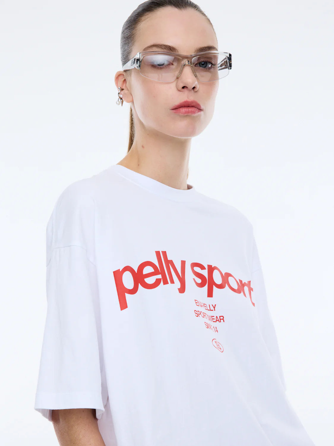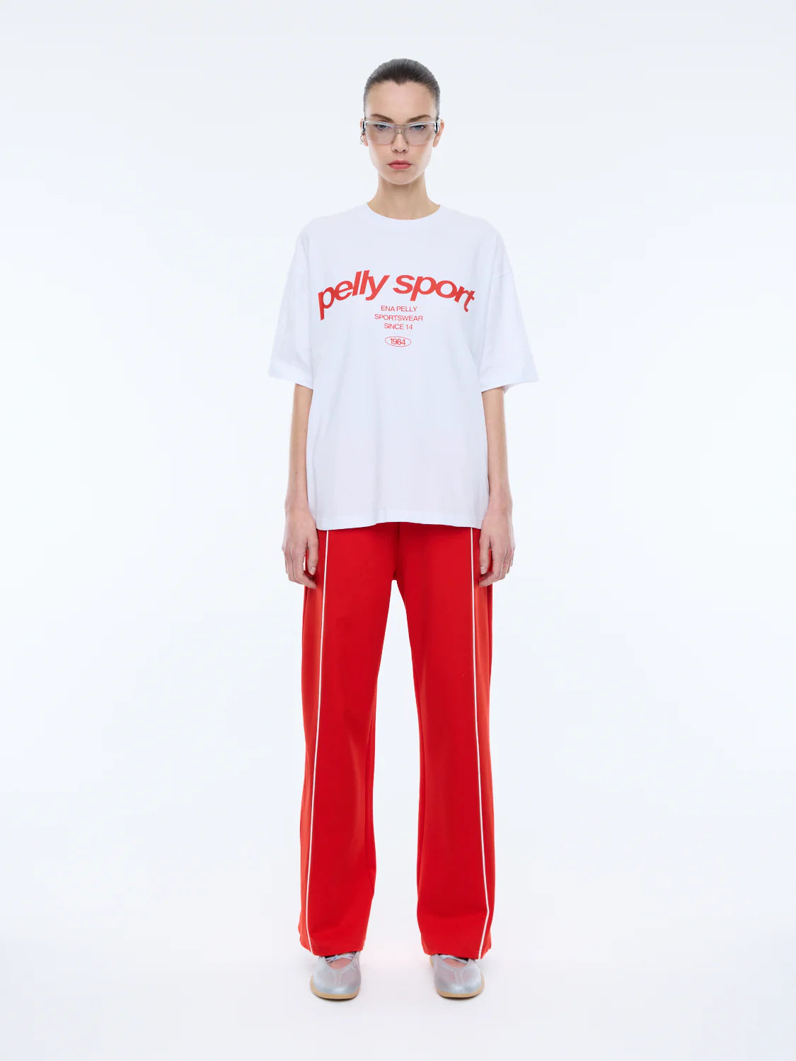 Designed for an everyday edge, the Pelly Sport Tee from Ena Pelly delivers streetwear style in an oversized silhouette with bold red logo graphics. With a sporty print and short sleeves, it's a statement staple made for off-duty dressing and laid-back days.