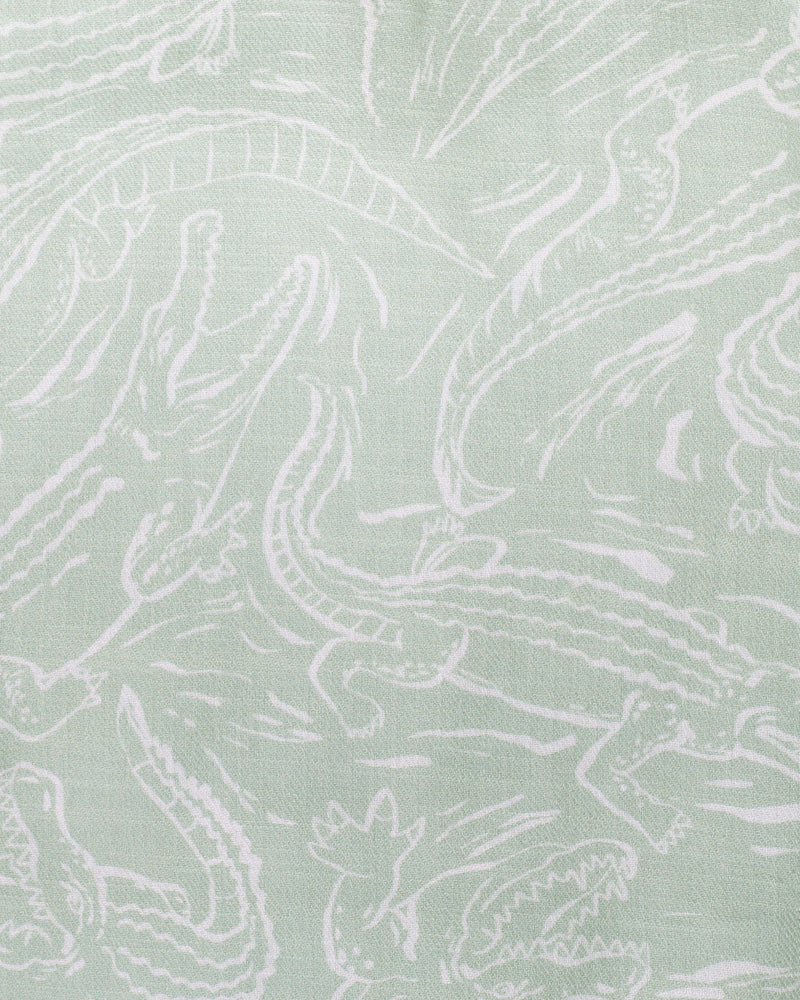 This short sleeve cute crocodile print woven cotton shirt offers comfort and breathability and features an open neck button through front and side splits, perfect for any occasion.