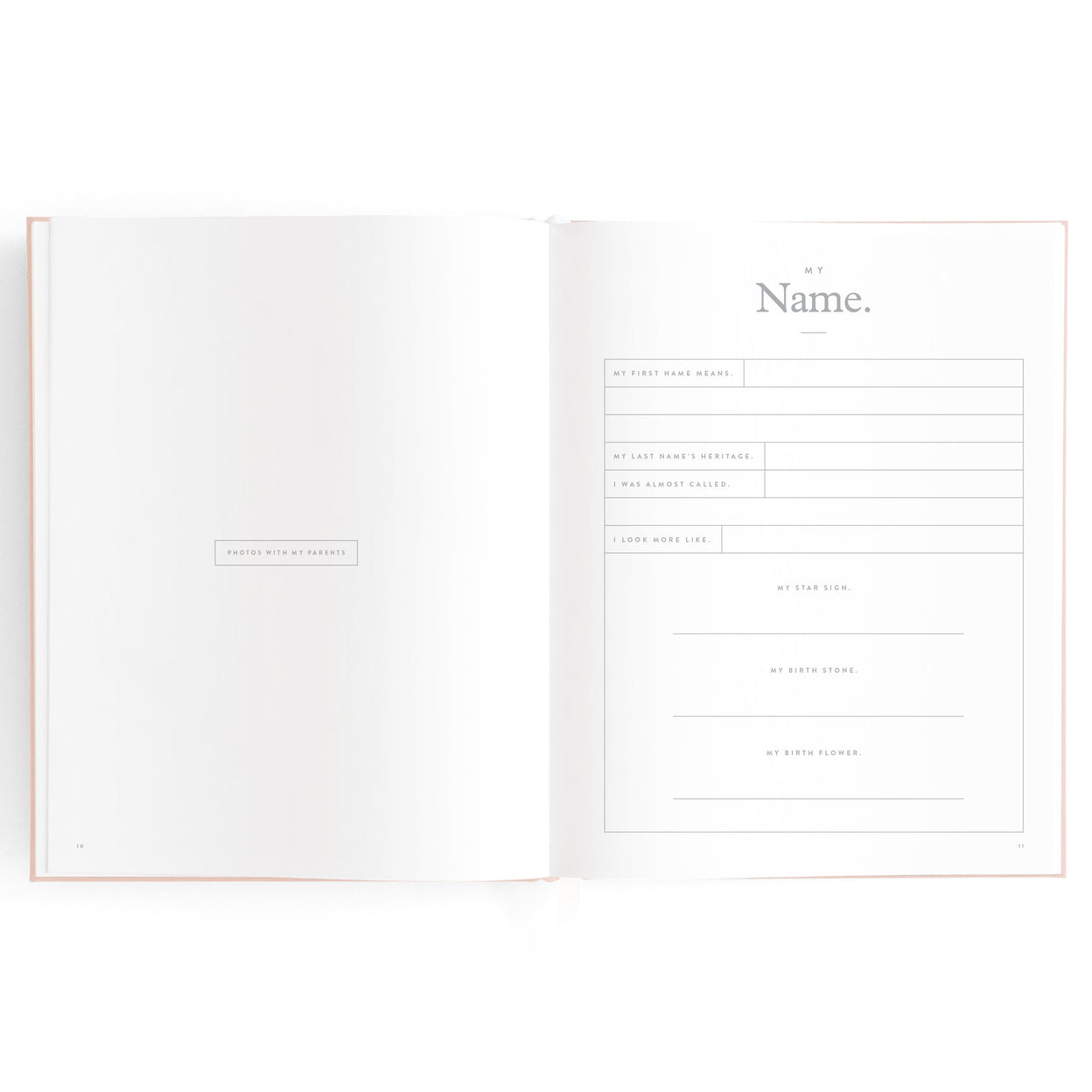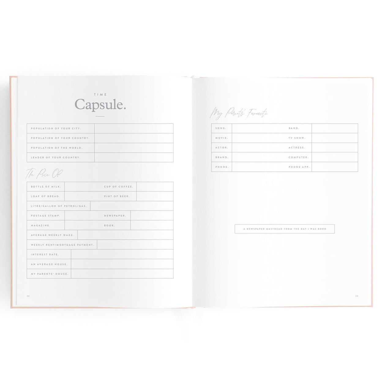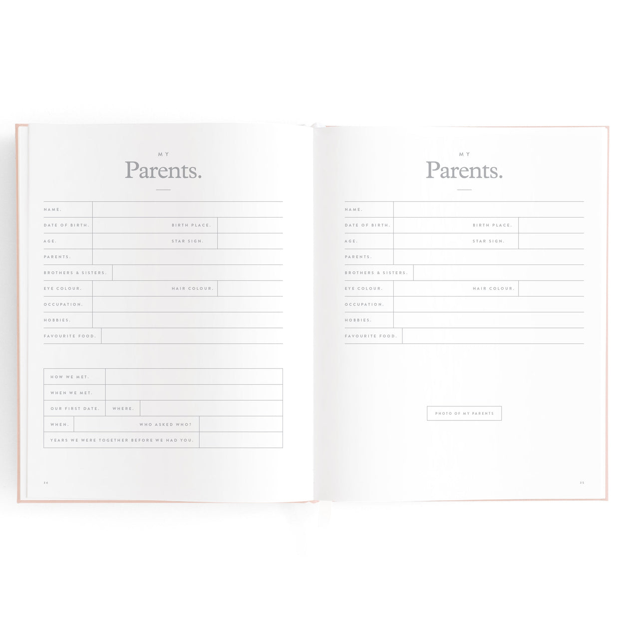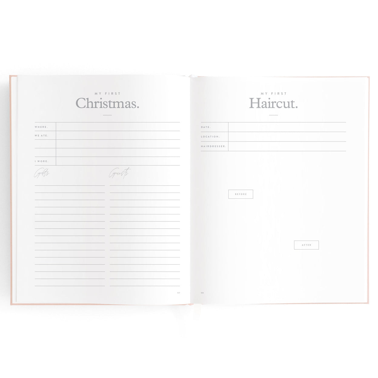 Includes: important milestones and firsts, family profiles, family tree and travel map, playgroup and daycare through to kindy and school years, time capsule, nicknames and celebrations, pets, friends, birthdays and more.