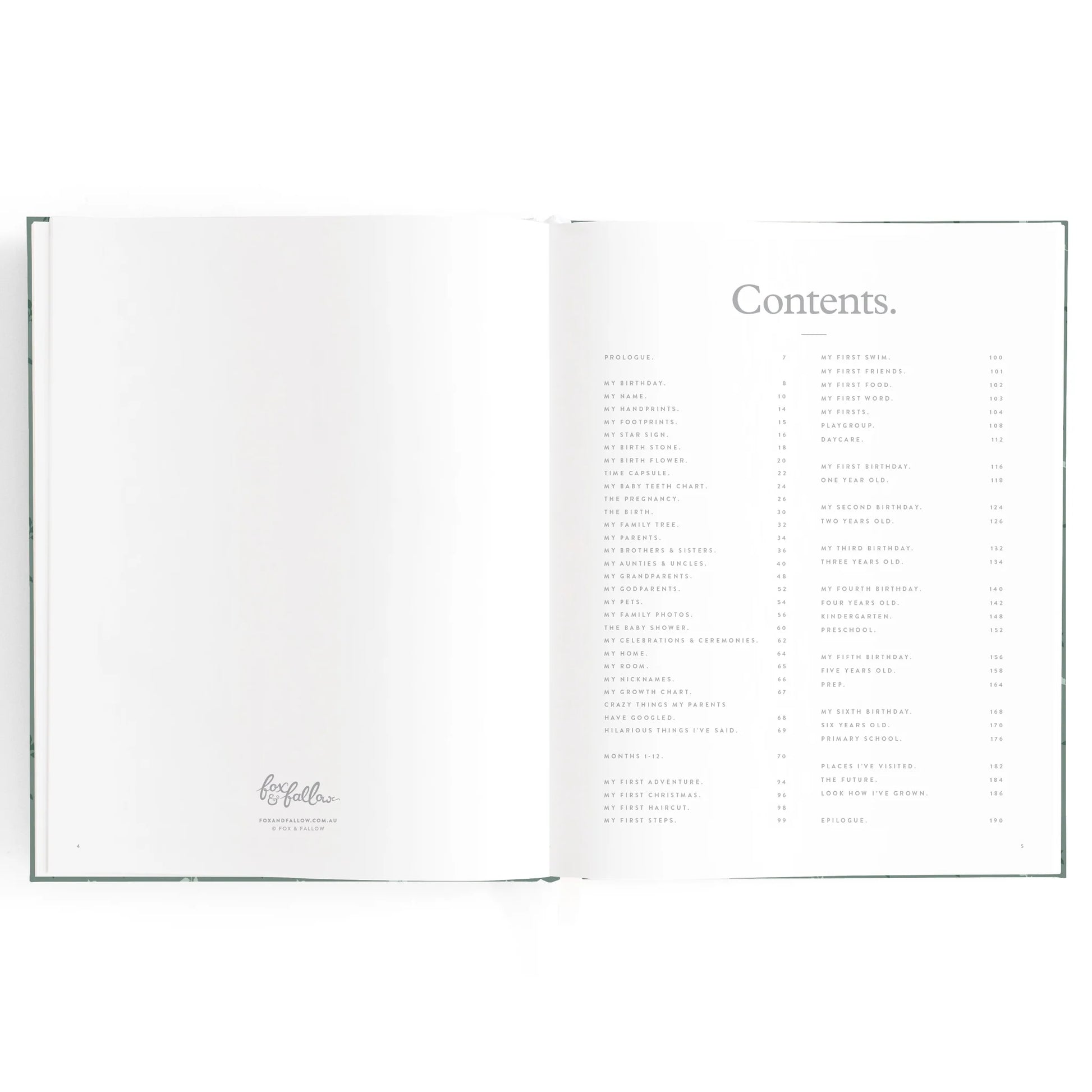 A beautiful keepsake for the whole family to enjoy in a blank cream linen box with small Fox & Fallow logo on the base. Includes: important milestones and firsts, family profiles, family tree and travel map, playgroup and daycare through to kindy and school years, time capsule, nicknames and celebrations, pets, friends, birthdays and more.
