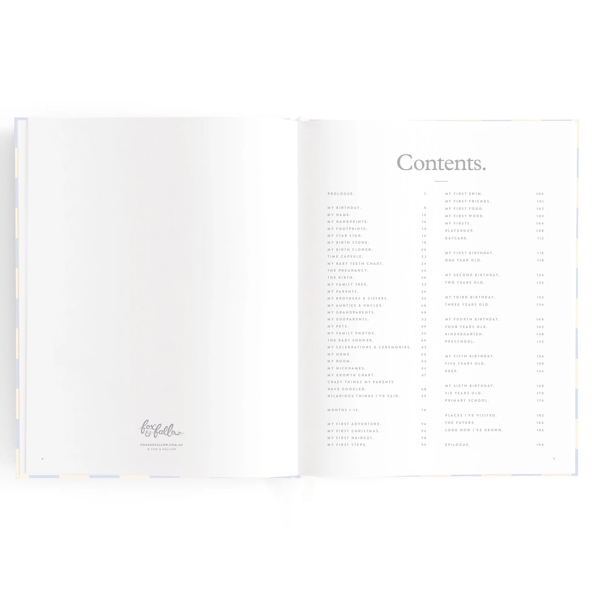 A beautiful keepsake for the whole family to enjoy in a blank cream linen box with small Fox & Fallow logo on the base. Includes: important milestones and firsts, family profiles, family tree and travel map, playgroup and daycare through to kindy and school years, time capsule, nicknames and celebrations, pets, friends, birthdays and more.