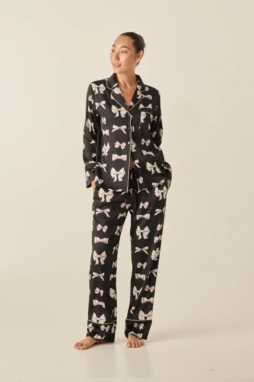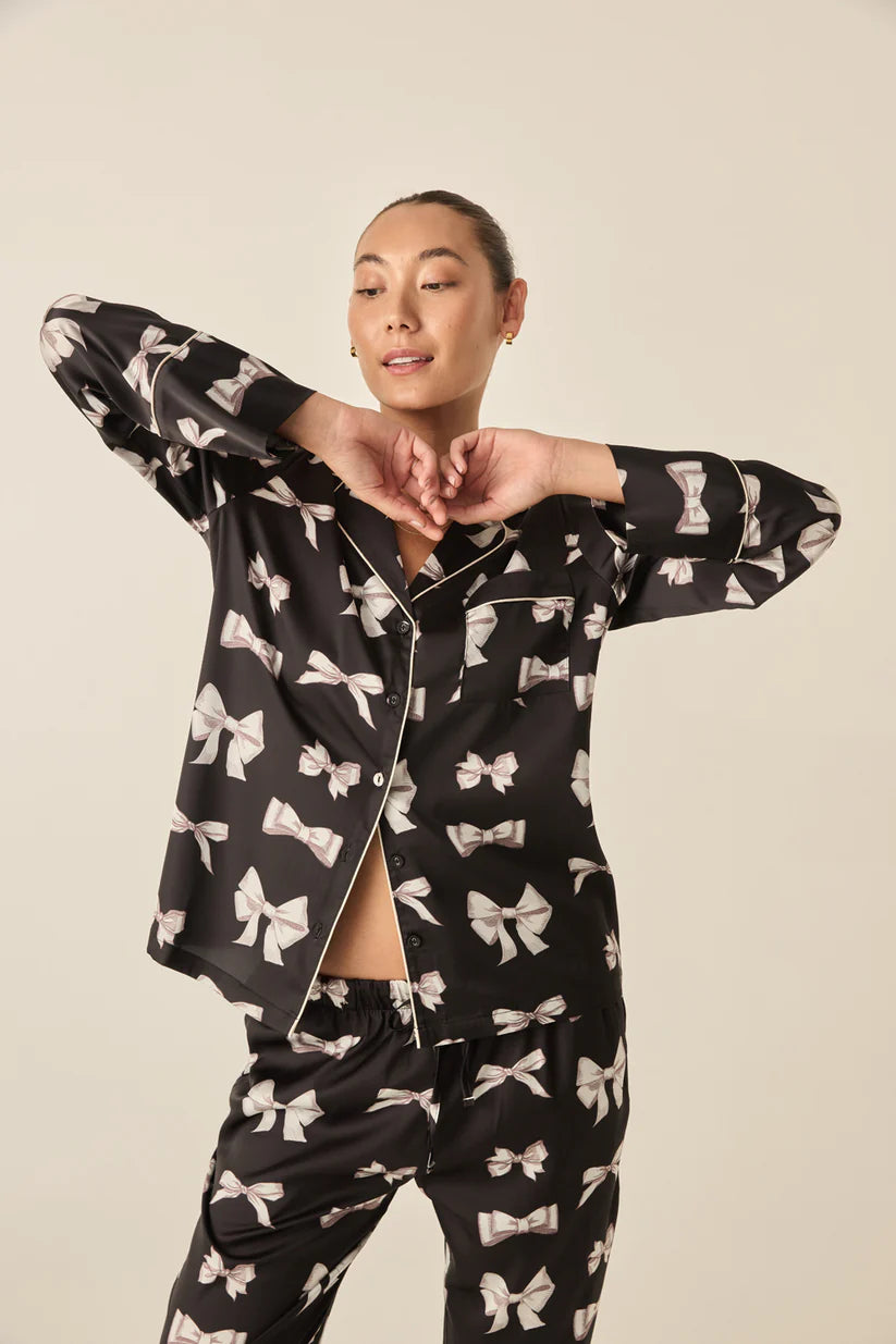 Gingerlilly - Kenzie Black Silky Satin Bow Set