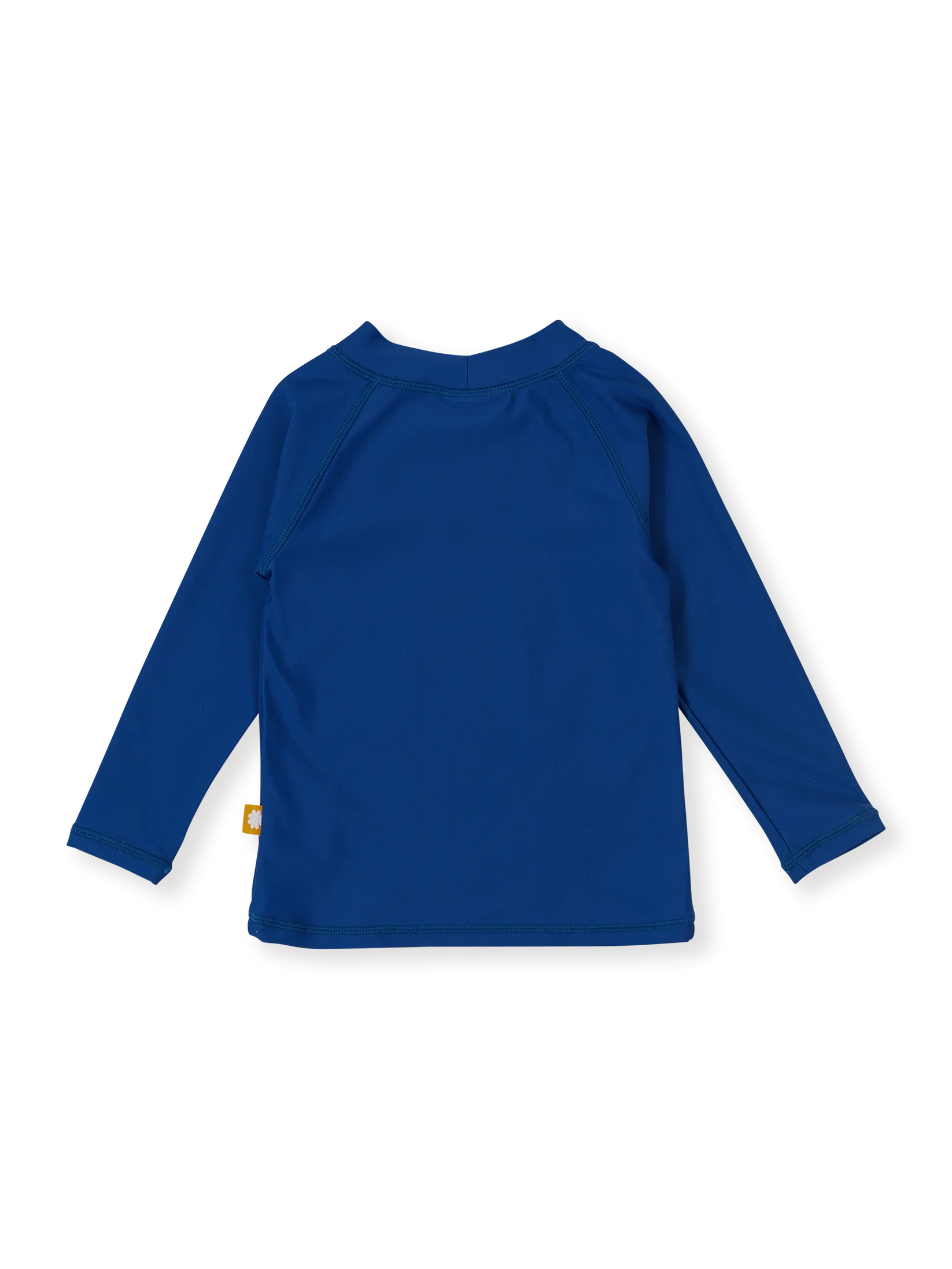 A playful blue rashie with “Goldie + Ace” spelled out in seaside doodles. All the sun-safe vibes, none of the fuss.