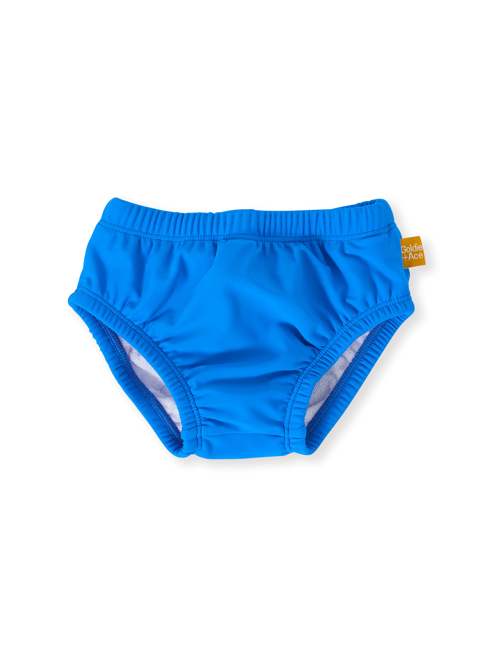 Simple reusable blue swim nappy with a comfy fit – ready for paddles, splashes, and tiny waves.