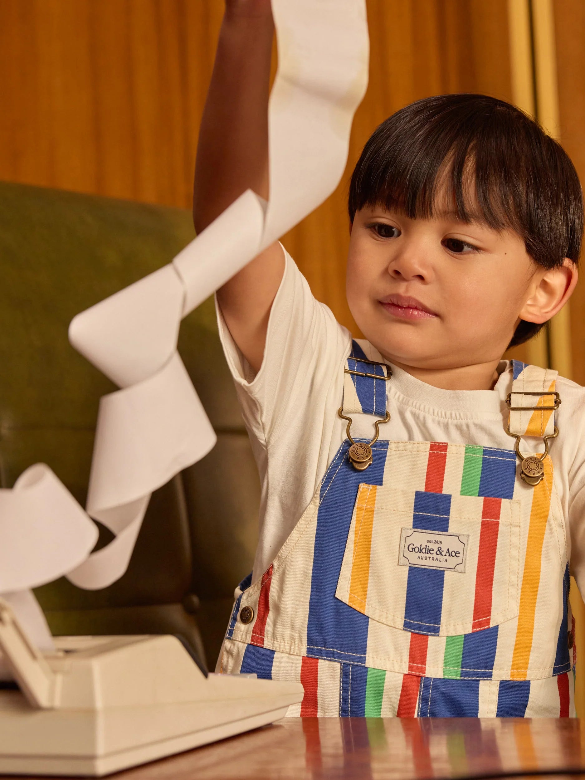 Find these 90s stripes up and down and all around our new James overalls – made for everyday adventurers who refuse to stay in their lane!