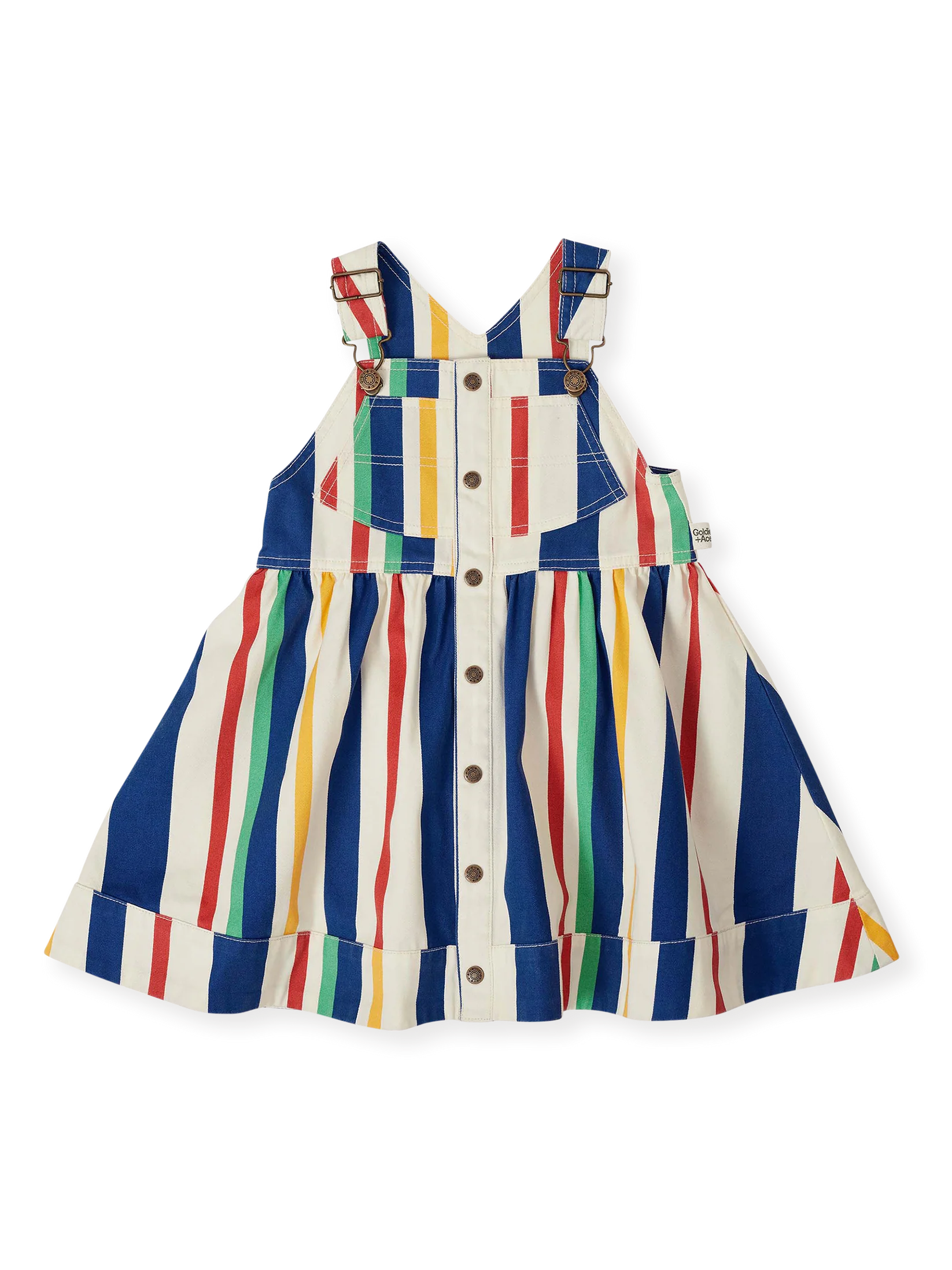 Goldie + Ace 90's Bold Stripe Heidi Denim Pinafore Dress