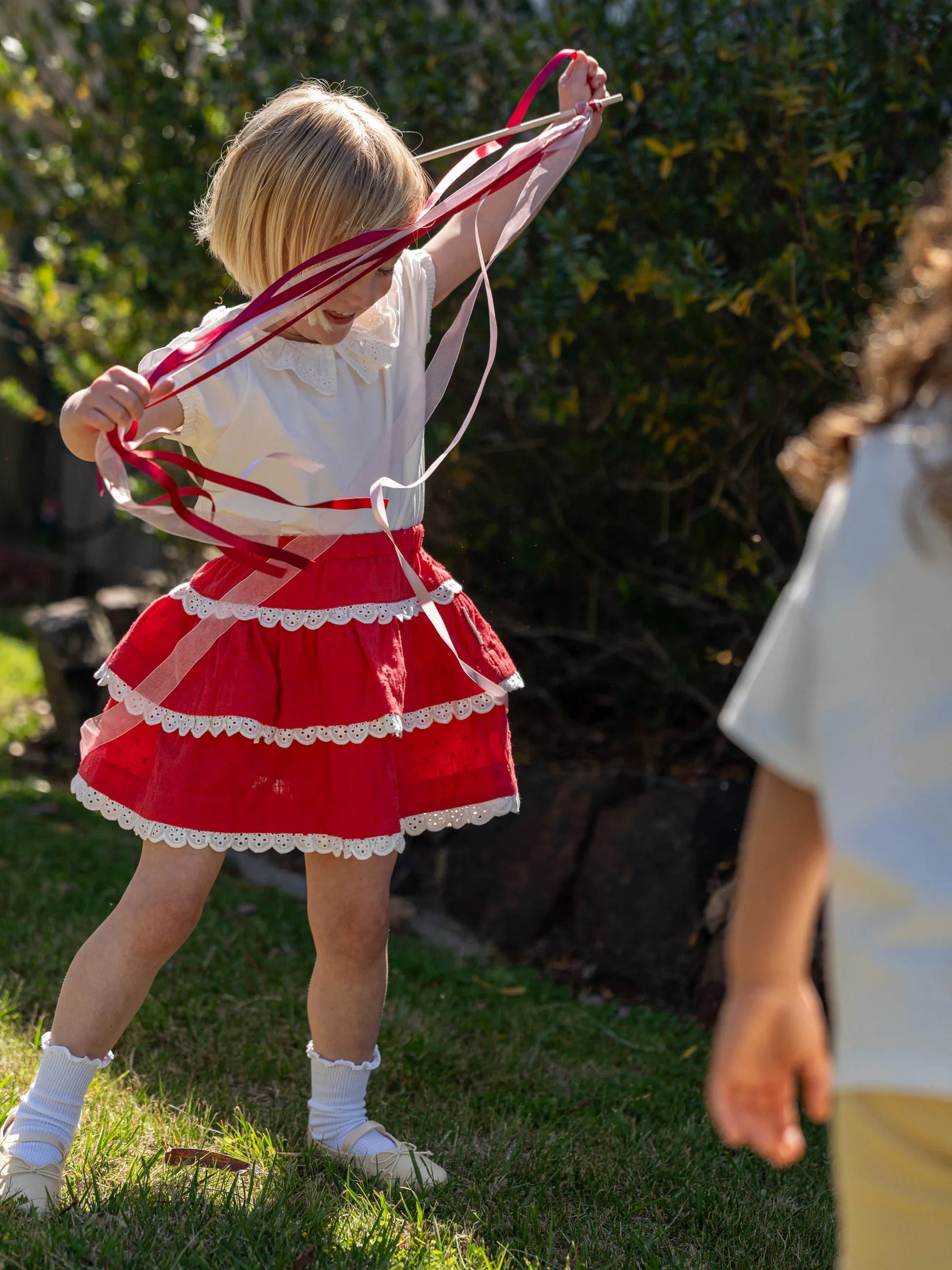 A charming cotton jersey top with puff sleeves and a feature broderie collar. Perfect on it's own or a versatile layering piece that adds an element of pretty to every ensemble!