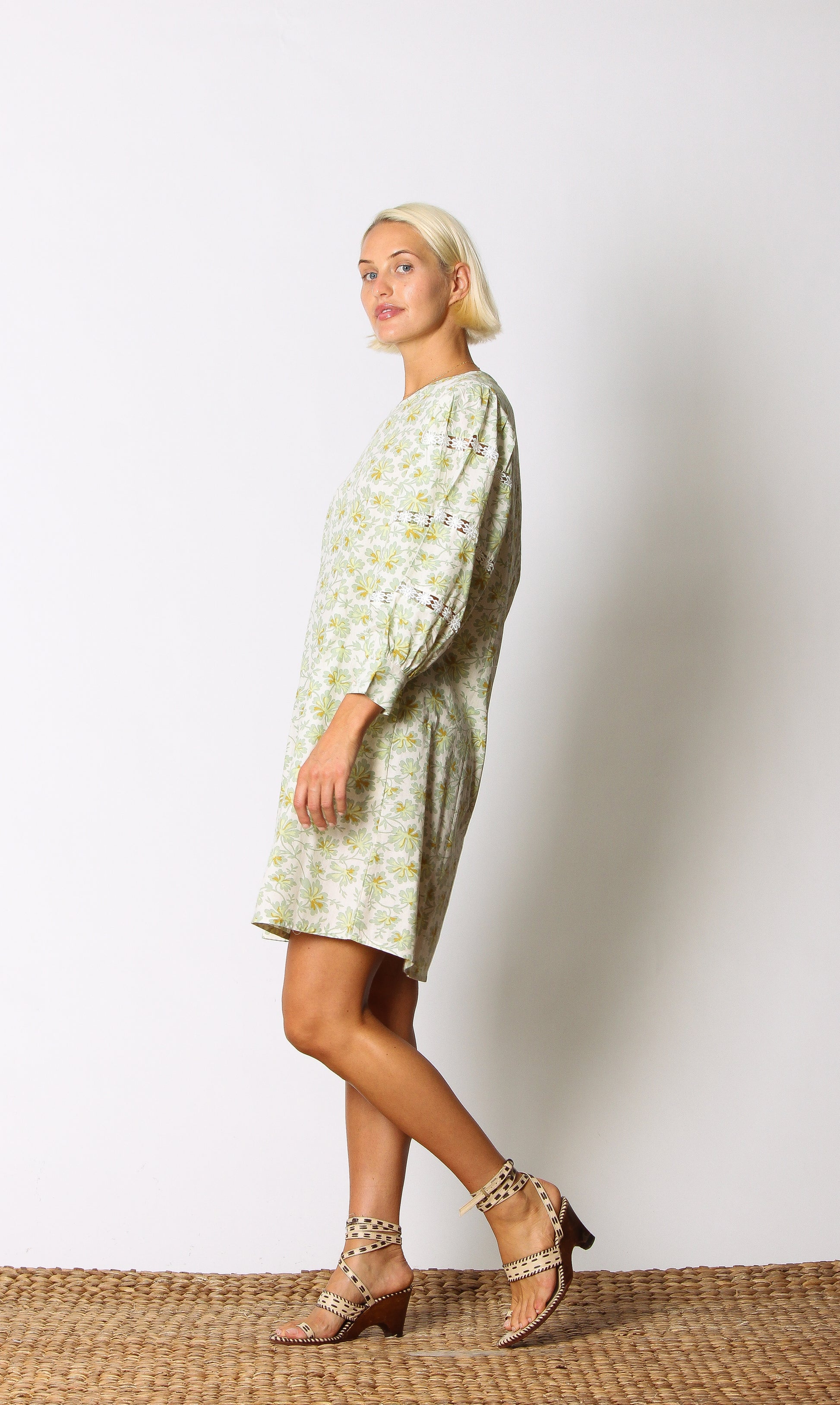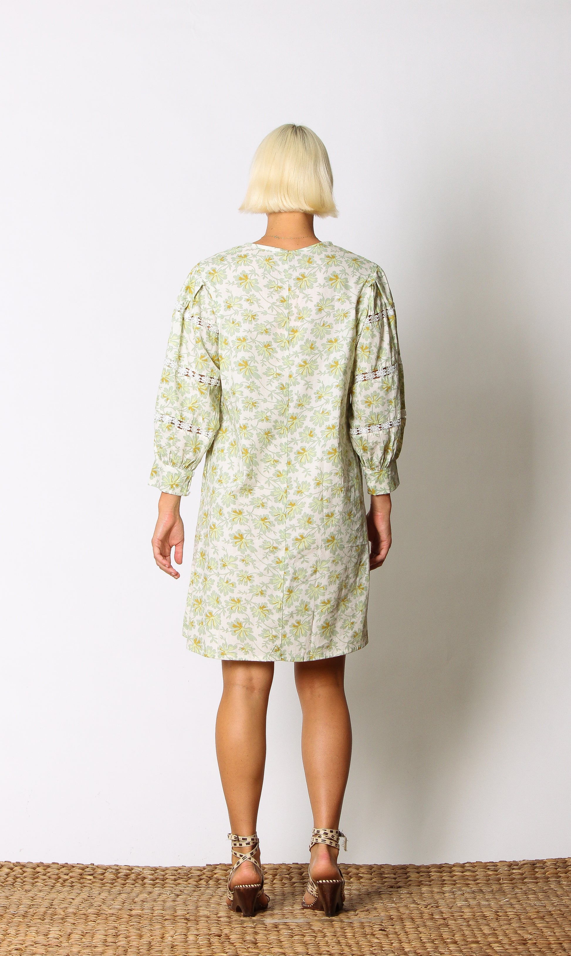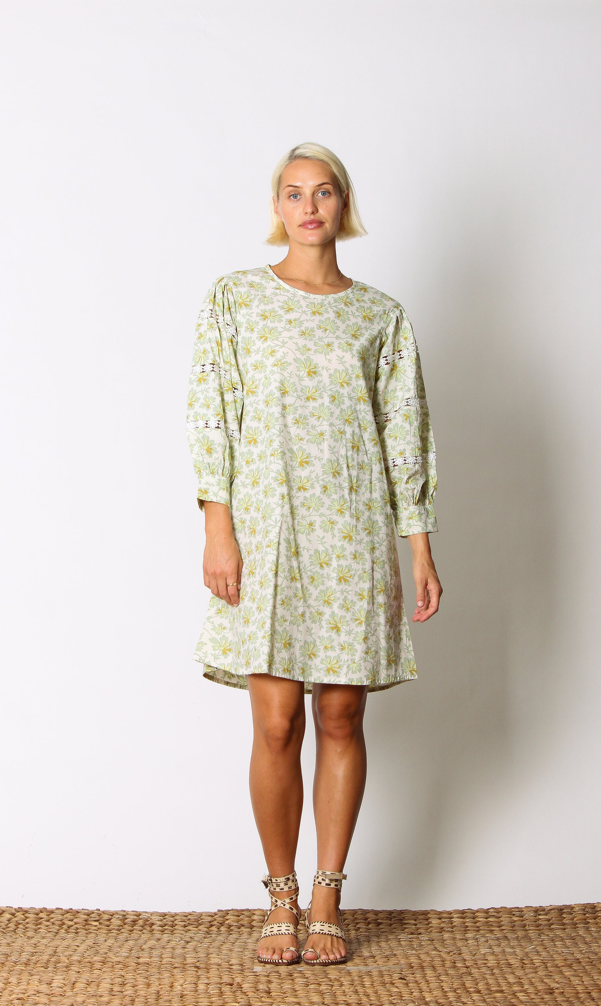 This 100% lux earth toned floral cotton dress has the most beautiful lace insert sleeves and very handy side pockets.