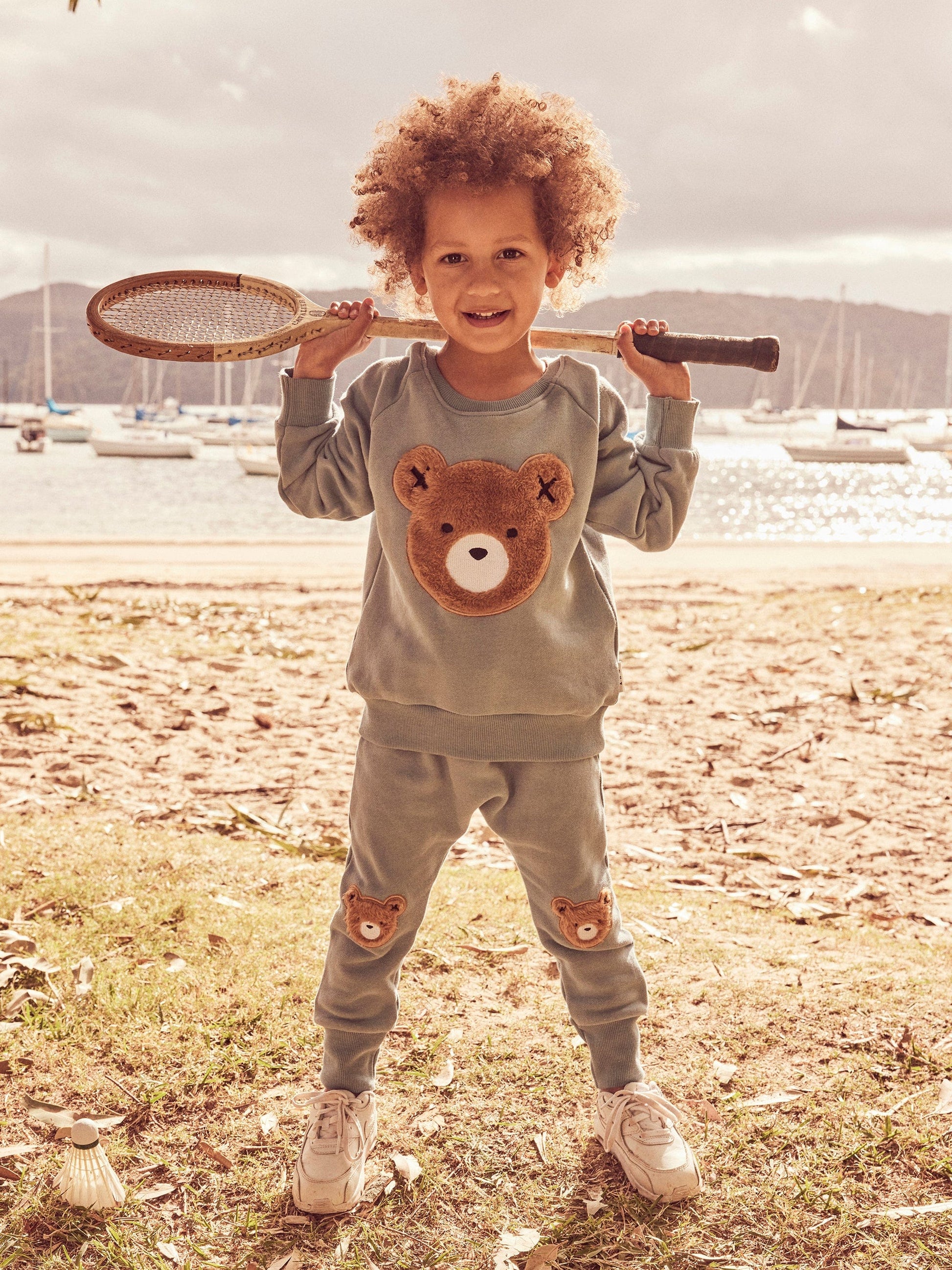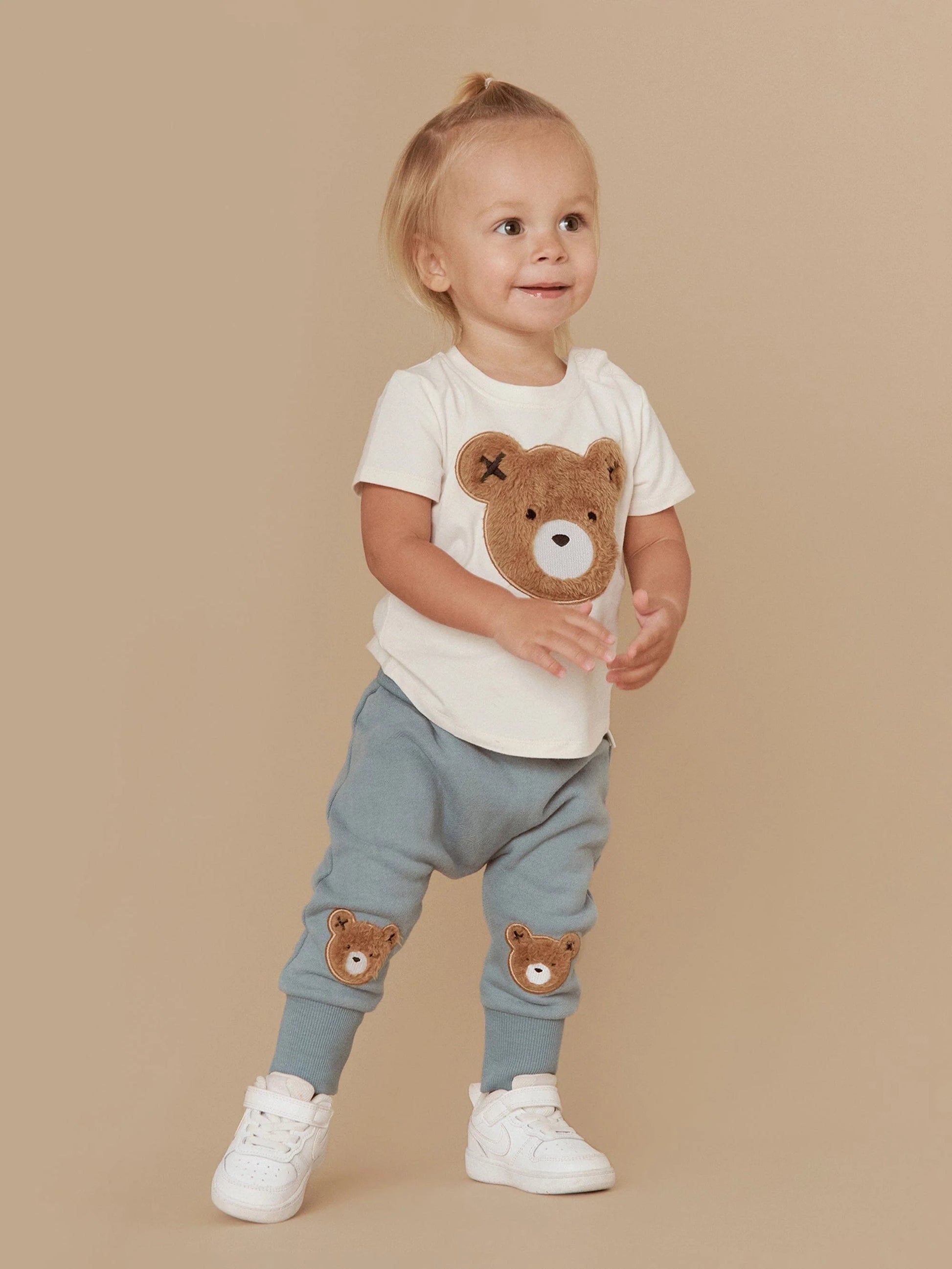 Your little one will love the furry huxbear appliqués on the knees of these organic cotton fleece pants! Our Furry Huxbear Knee Drop Crotch Pants are super comfy and cosy, plus they come with a soft elasticised waistband so they are perfect for all day play!