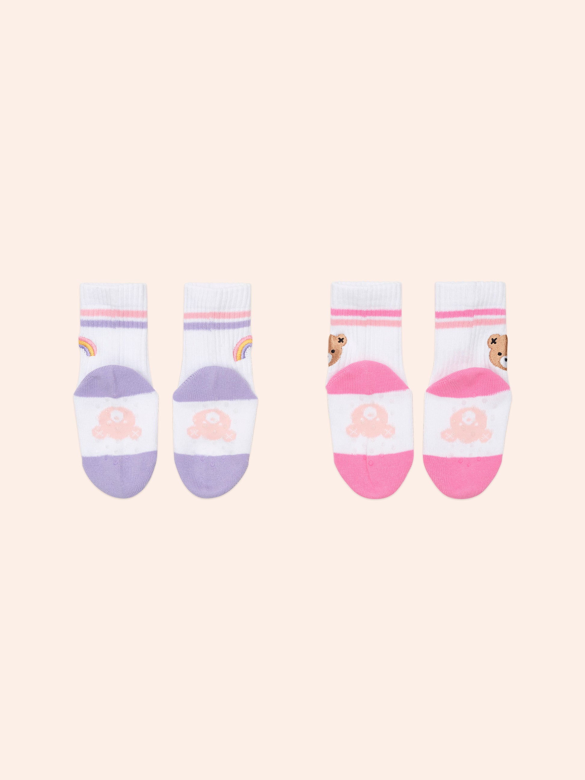 Two pairs of the softest, squishiest socks you’ll ever meet. Made with a breathable blend of fibres to cushion busy feet. Your new everyday essentials, these sport-style socks in shades of blush pink are designed to mix and match with any Huxbaby outfit. Made with non-slip grippies on baby sizes 6-12 months.