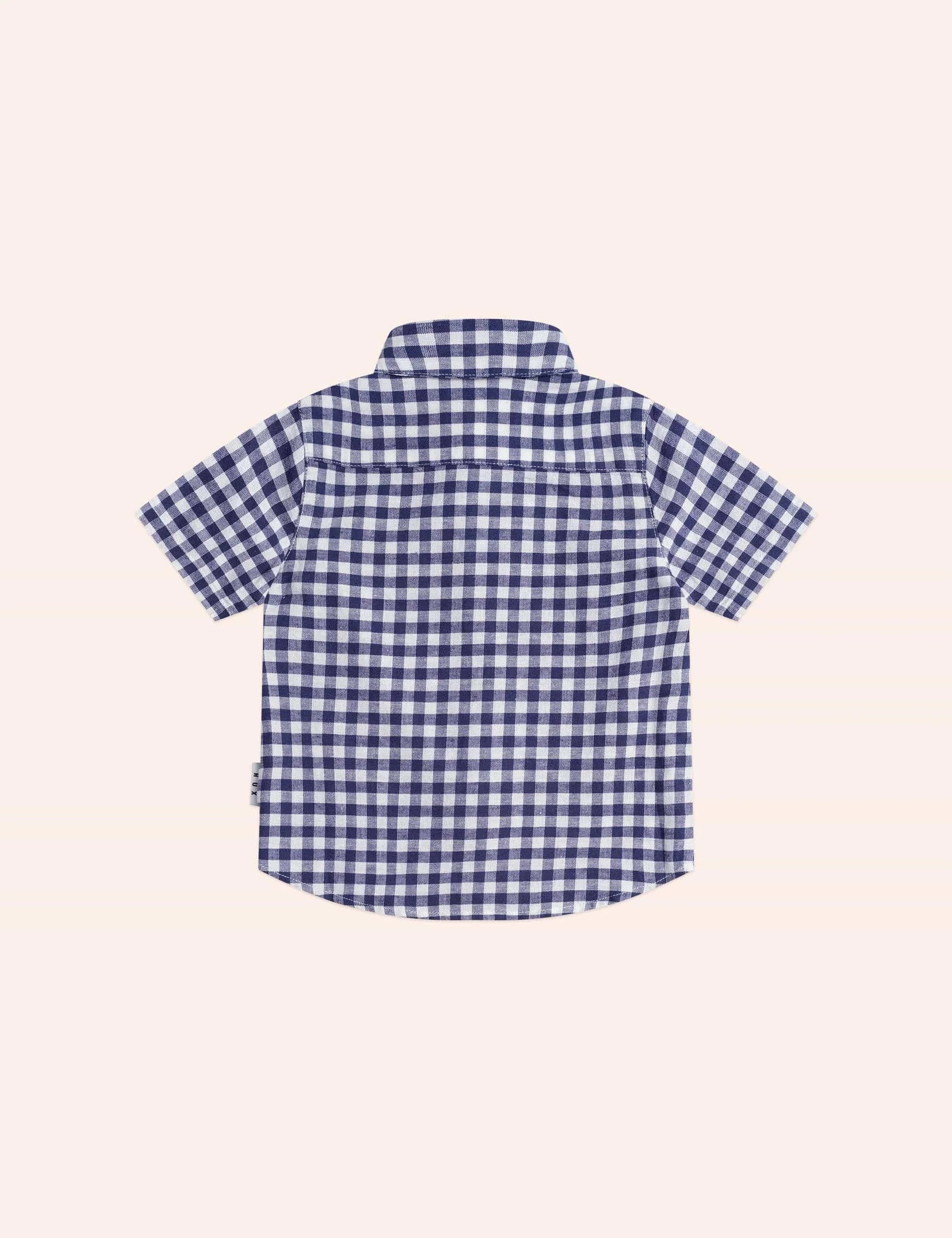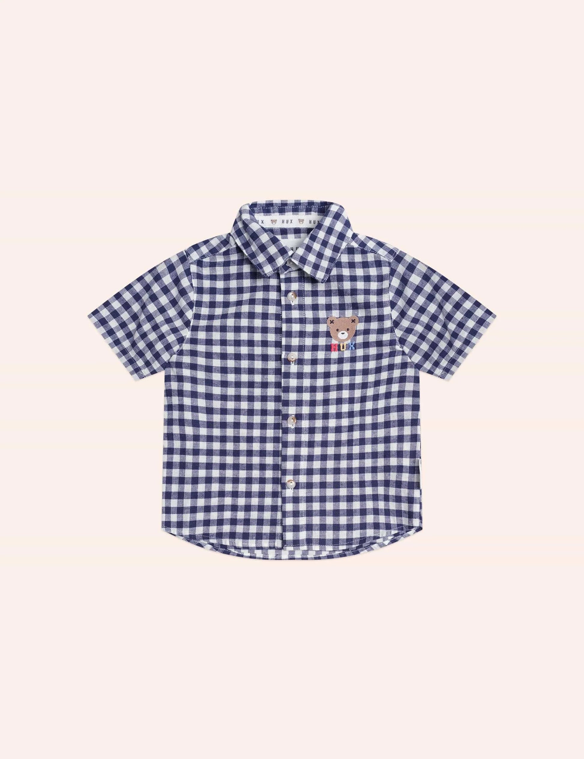 The perfect short sleeve button down shirt. In a classic gingham check made from beautiful cotton linen and with a relaxed casual fit. A timeless style, featuring a cute Huxbear embroidery on the left chest.