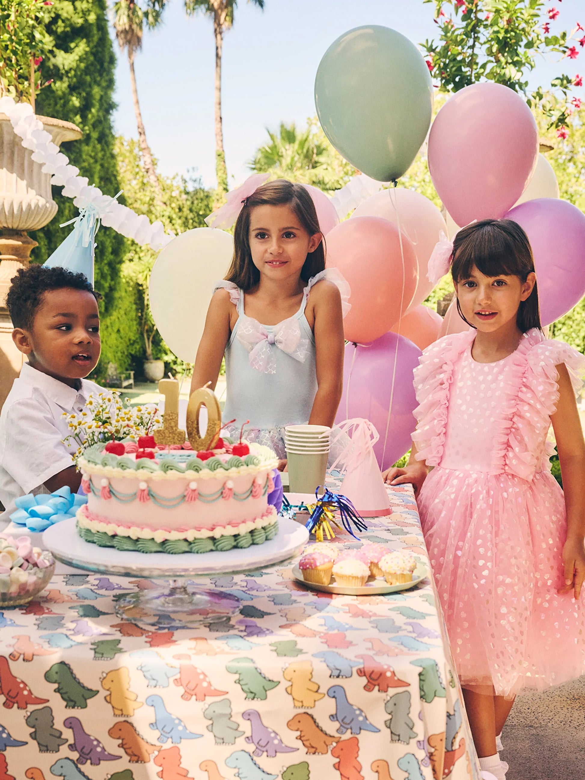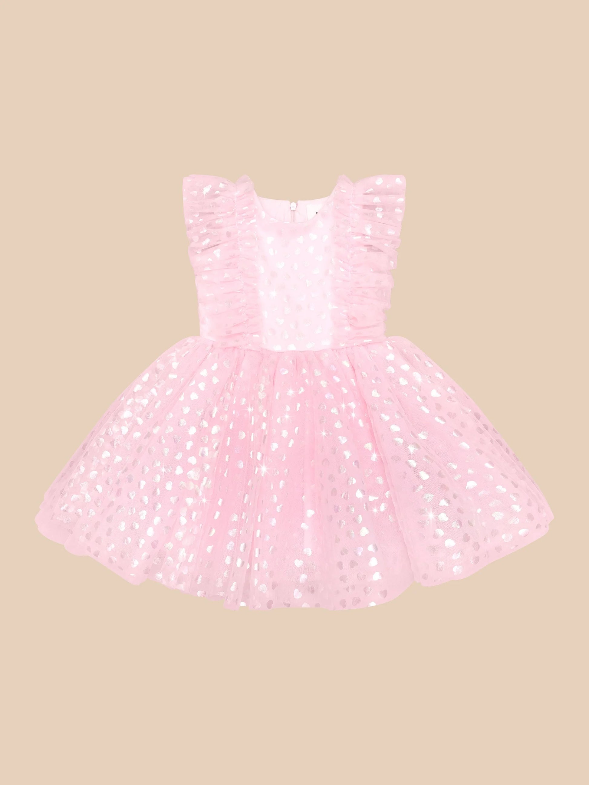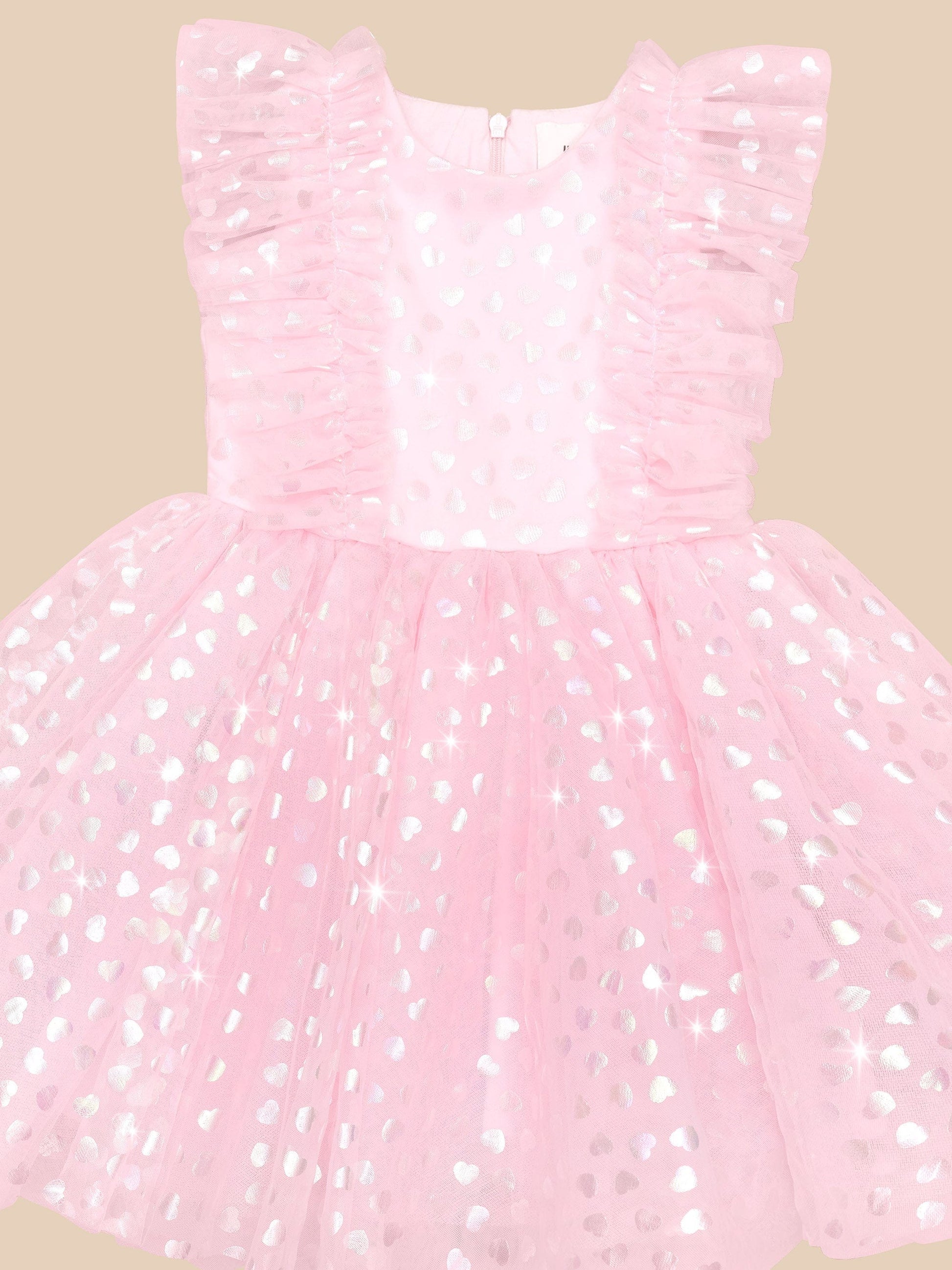 - Party ready tulle dress with all over iridescent foil heart print