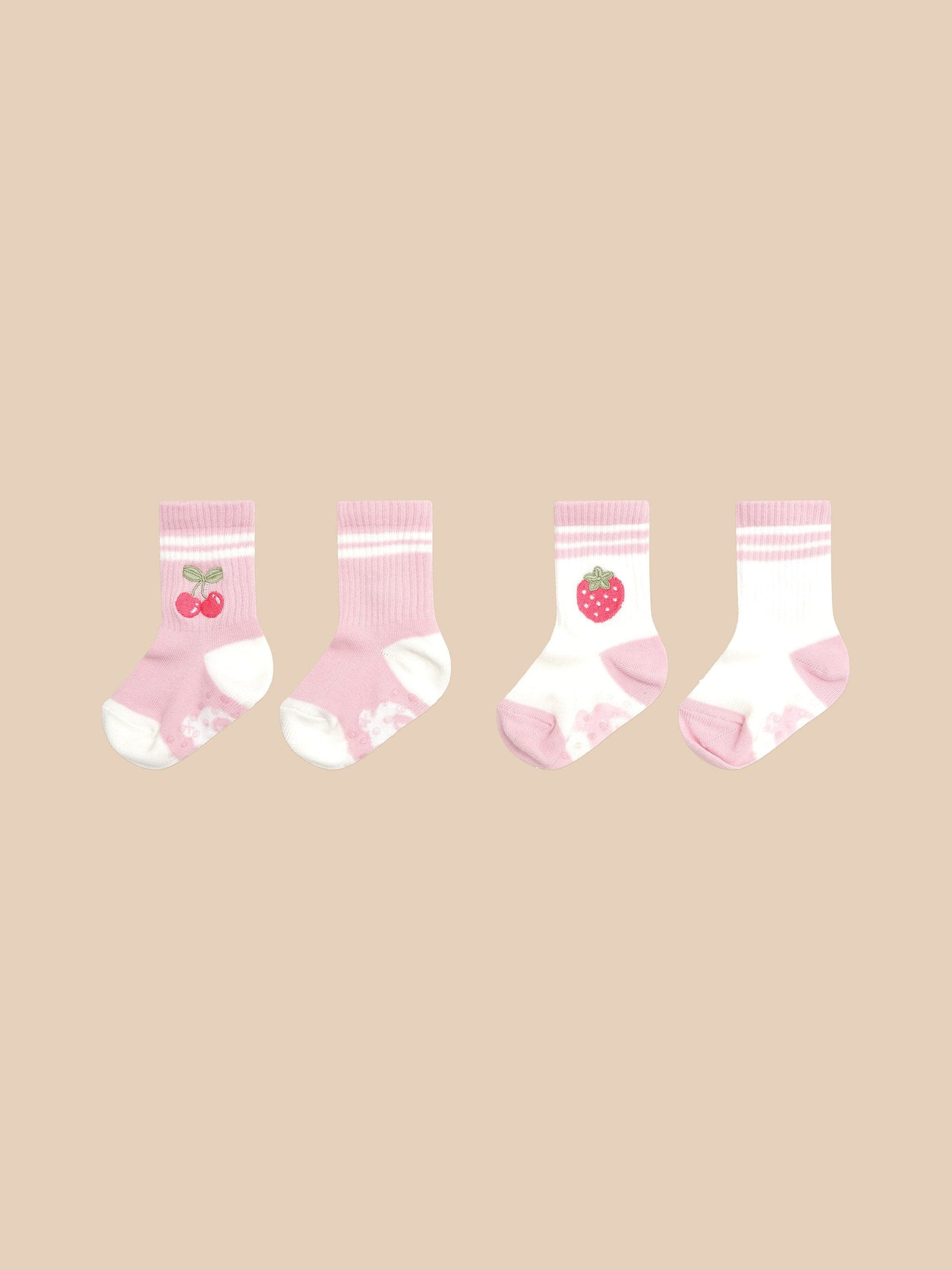 - Sporty 2pk socks with cherry and strawberry embroidery