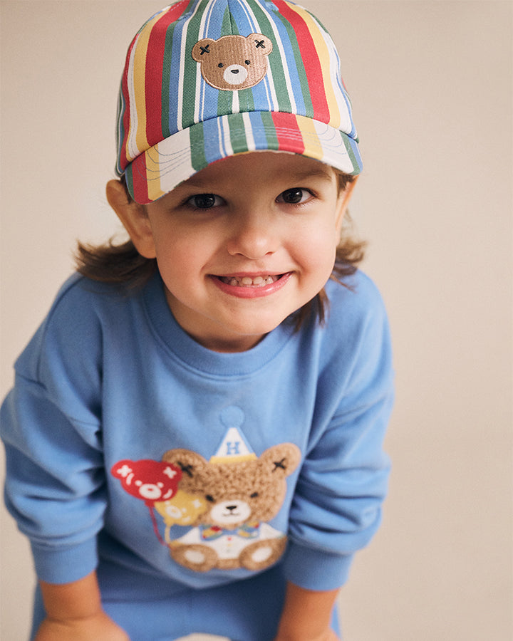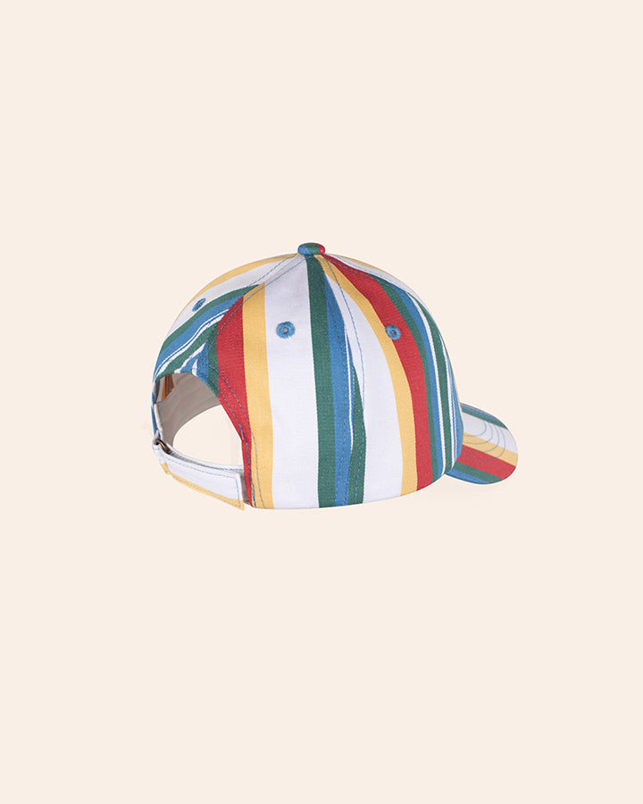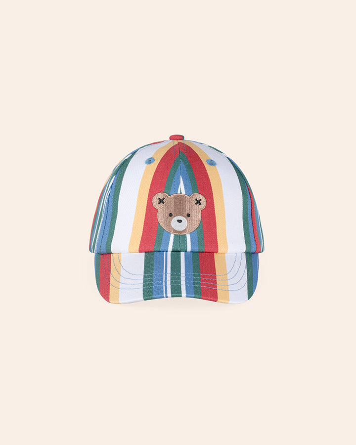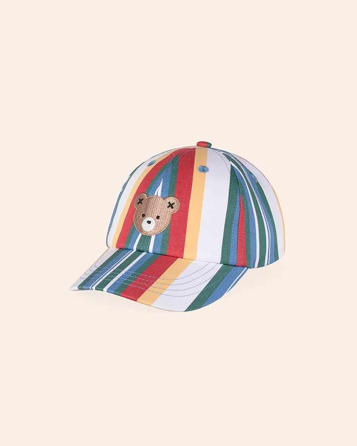 THE cap for cool kids. Made in a vintage striped cotton with an embroidered Huxbear logo and an adjustable velcro back strap for comfy fits. 100% cotton Vintage stripe One size fits all - up to 54cm Designed in Melbourne