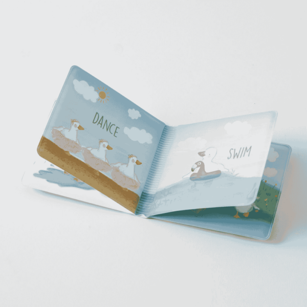 Perfect for making bath time fun yet educational for children, Ducky’s Splashy Day Bath Book is guaranteed a lot of QUACK QUACKs and giggles! Each page in this bath book contains educational imagery for learning new verbs and action words- all with the help of our adorable and adventurous protagonist Ducky!
