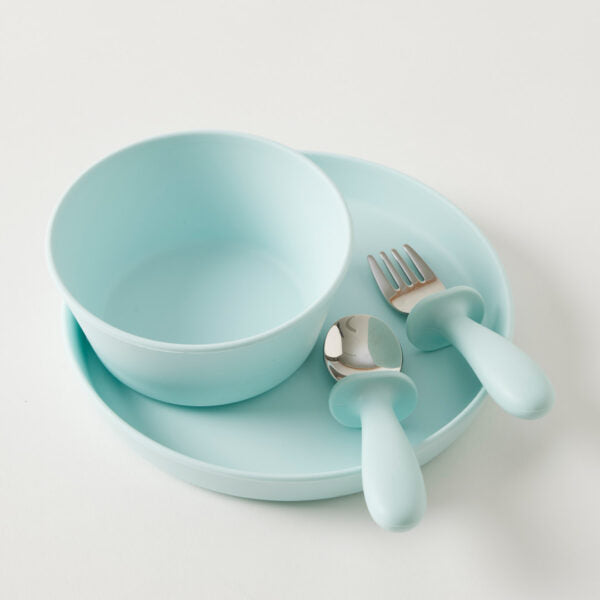 For big kids only! This stainless steel and silicone cutlery set is perfect for little hands. The easy-grip silicone and ergonomic handles make them simple to use and help mealtime feel all grown up. Comes with one dishwasher-safe spoon and fork.