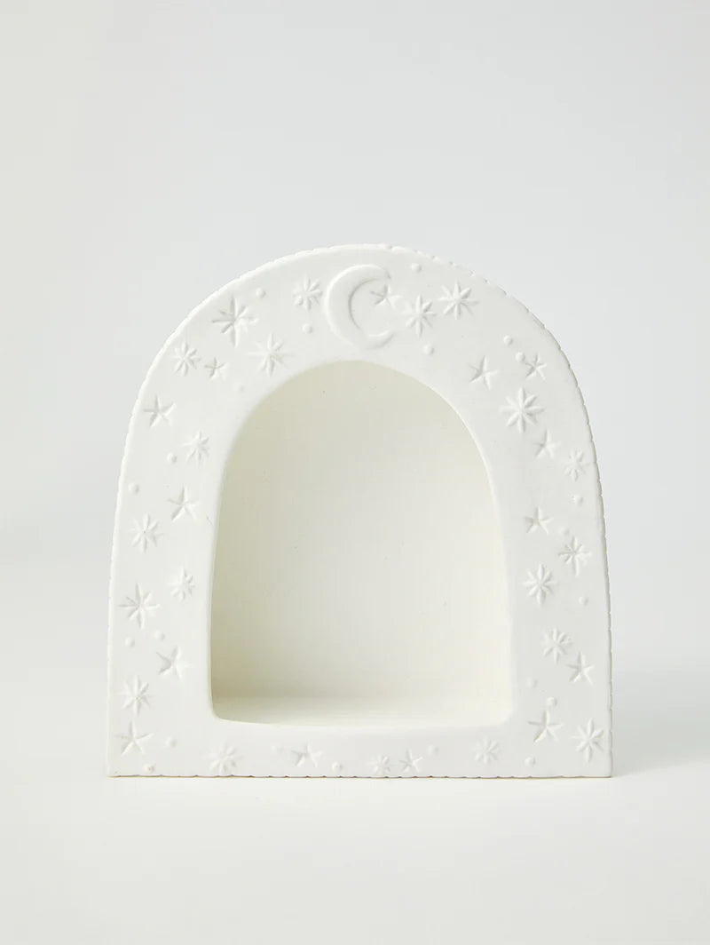 The Luna Wall Shelf, a gorgeous arched shape ready to hang and elevate your space with celestial elegance. Perfect for displaying small treasures, from delicate vases and shimmering crystals to totems and special pebbles and shells collected on your travels. Transform any room into a personalized sanctuary where every item tells a story and every corner radiates personalisation.