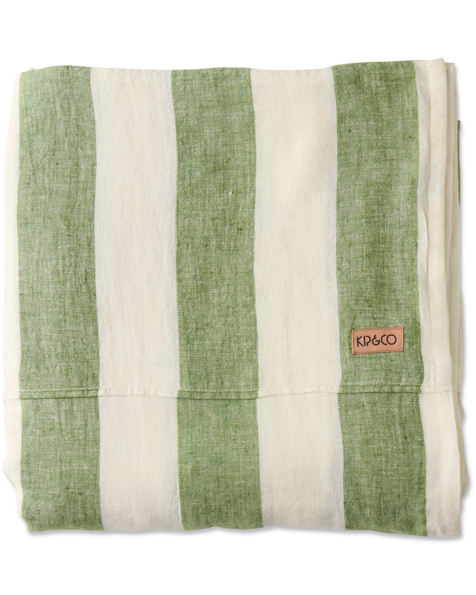Kip & Co - Moss Stripe Linen Flat Sheet Queen