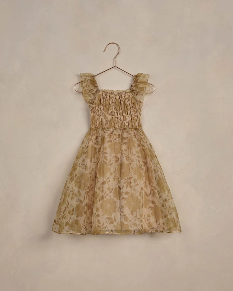 The Dolly Dress features a printed organza fabric with ruffled sleeves, smocked bodice, gathered skirt, and a square neckline to create subtle yet gorgeous details for this must-have dress of the season.