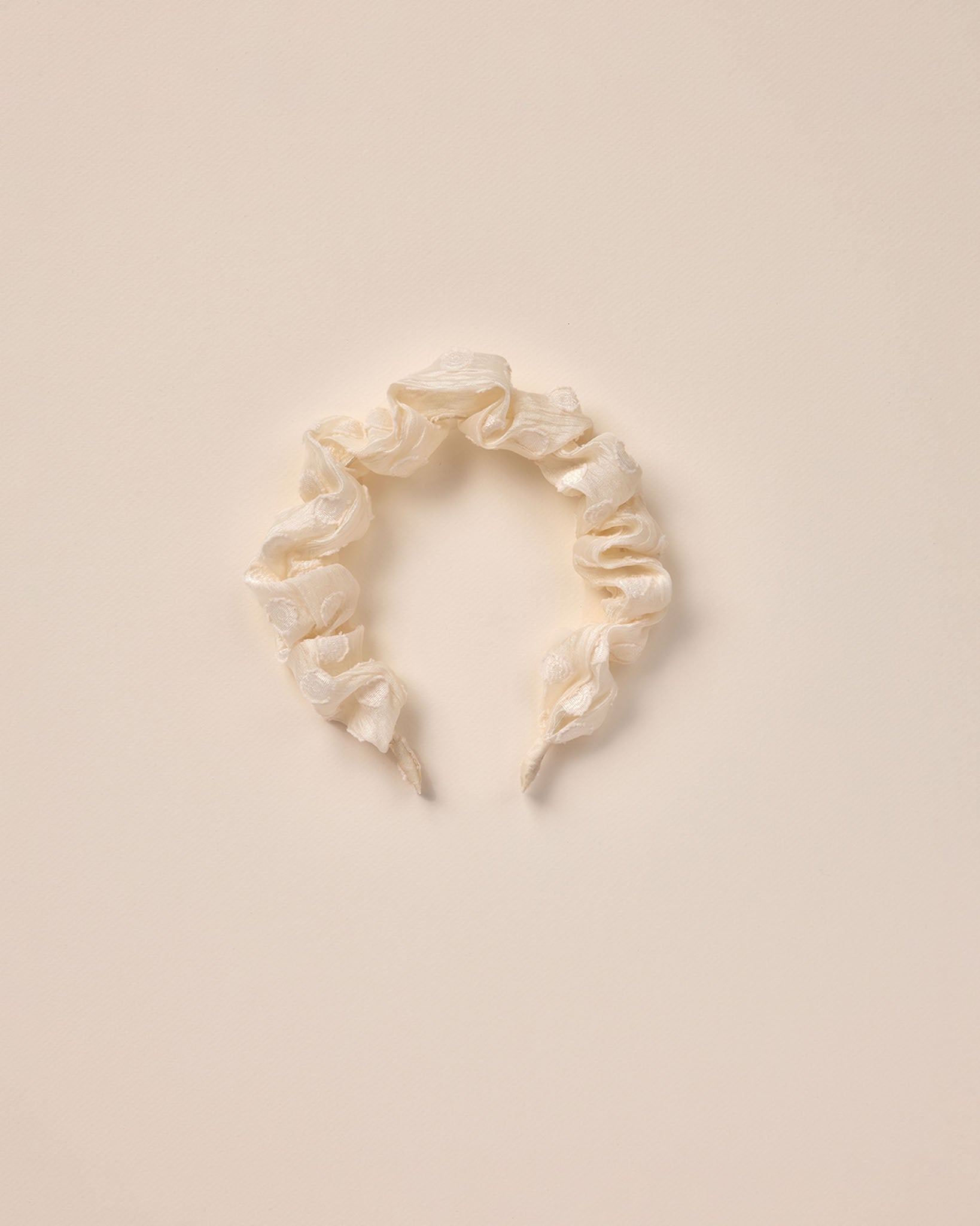 Outfit complete, with our Gathered Headband in our 'natural' dotty organza fabric. Style with any dress and you’re set for the ultimate party look!