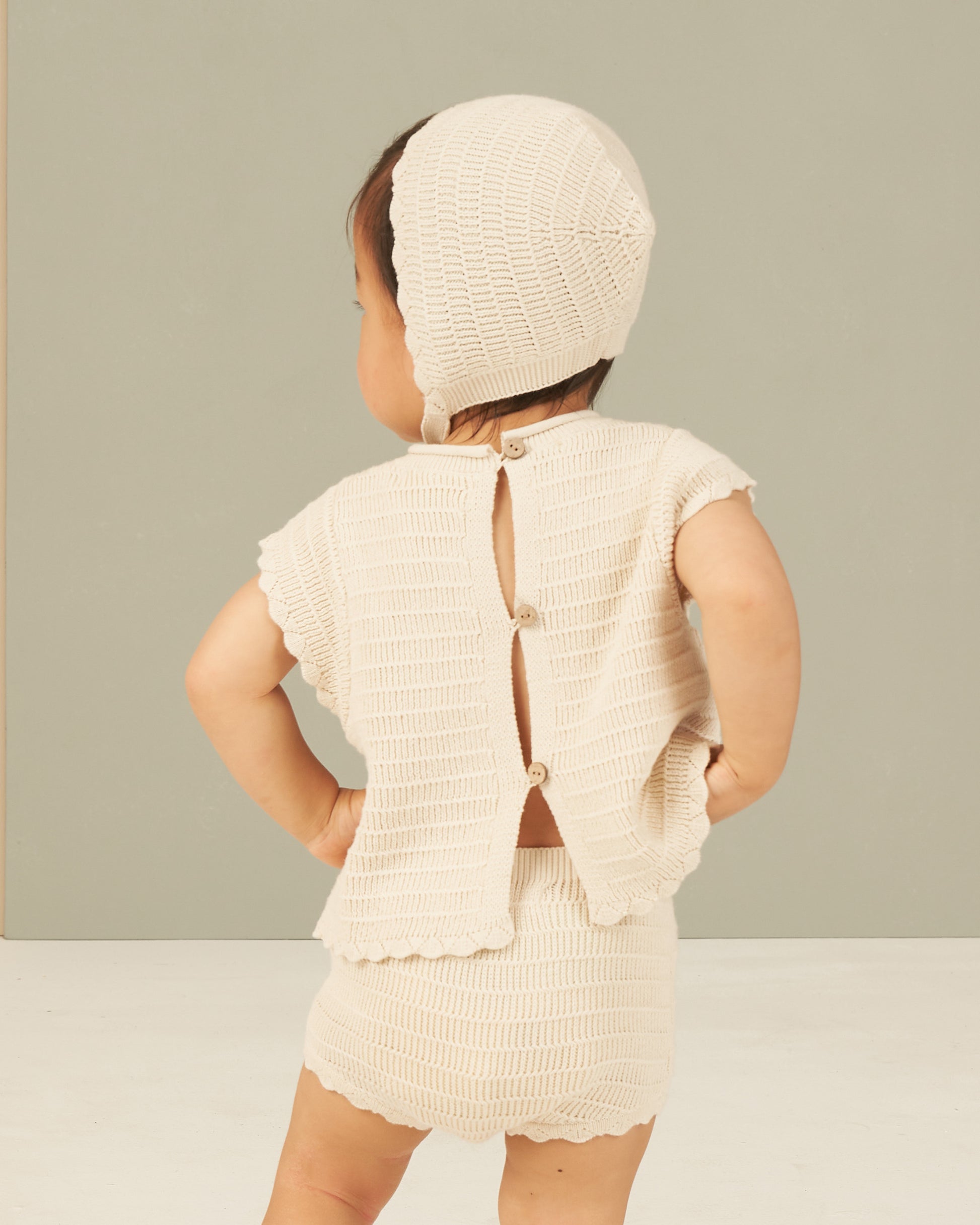 Rylee & Cru Scallop Knit Baby Set || Natural