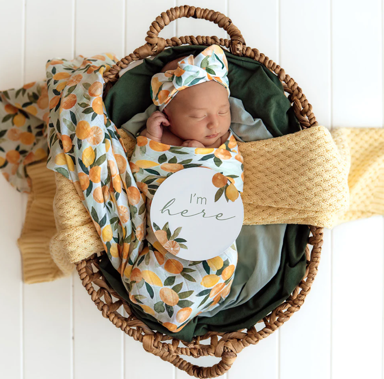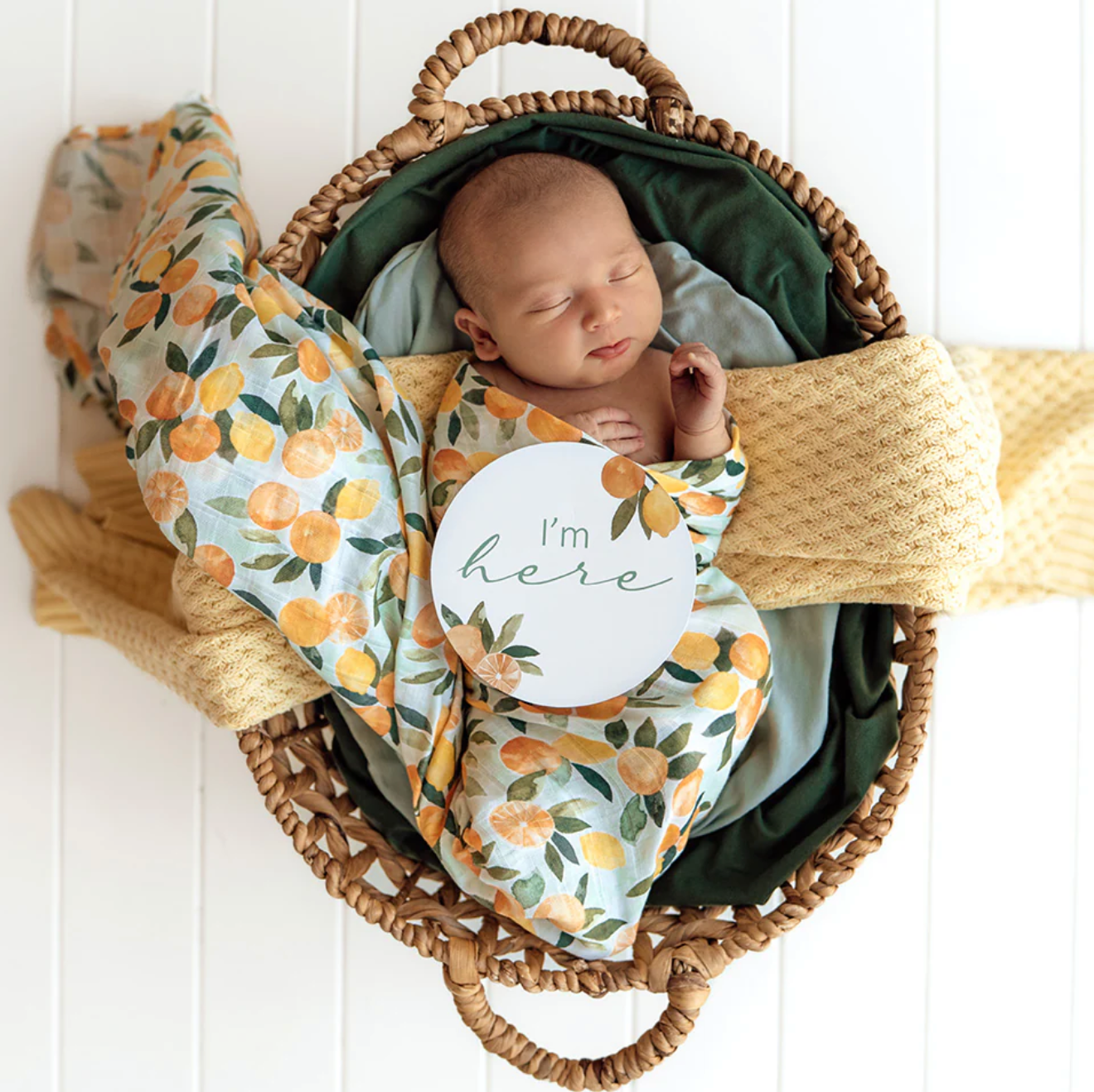 Capture your baby's milestone moments and document their 'firsts' in photographs to treasure for a lifetime with Snuggle Huny's Citrus Squeeze & Peach Milestone Cards. Perfect for that birth announcement photo; they match beautifully with Citrus Squeeze jersey & muslin wraps and organic clothes. 25 Reversible Cards.