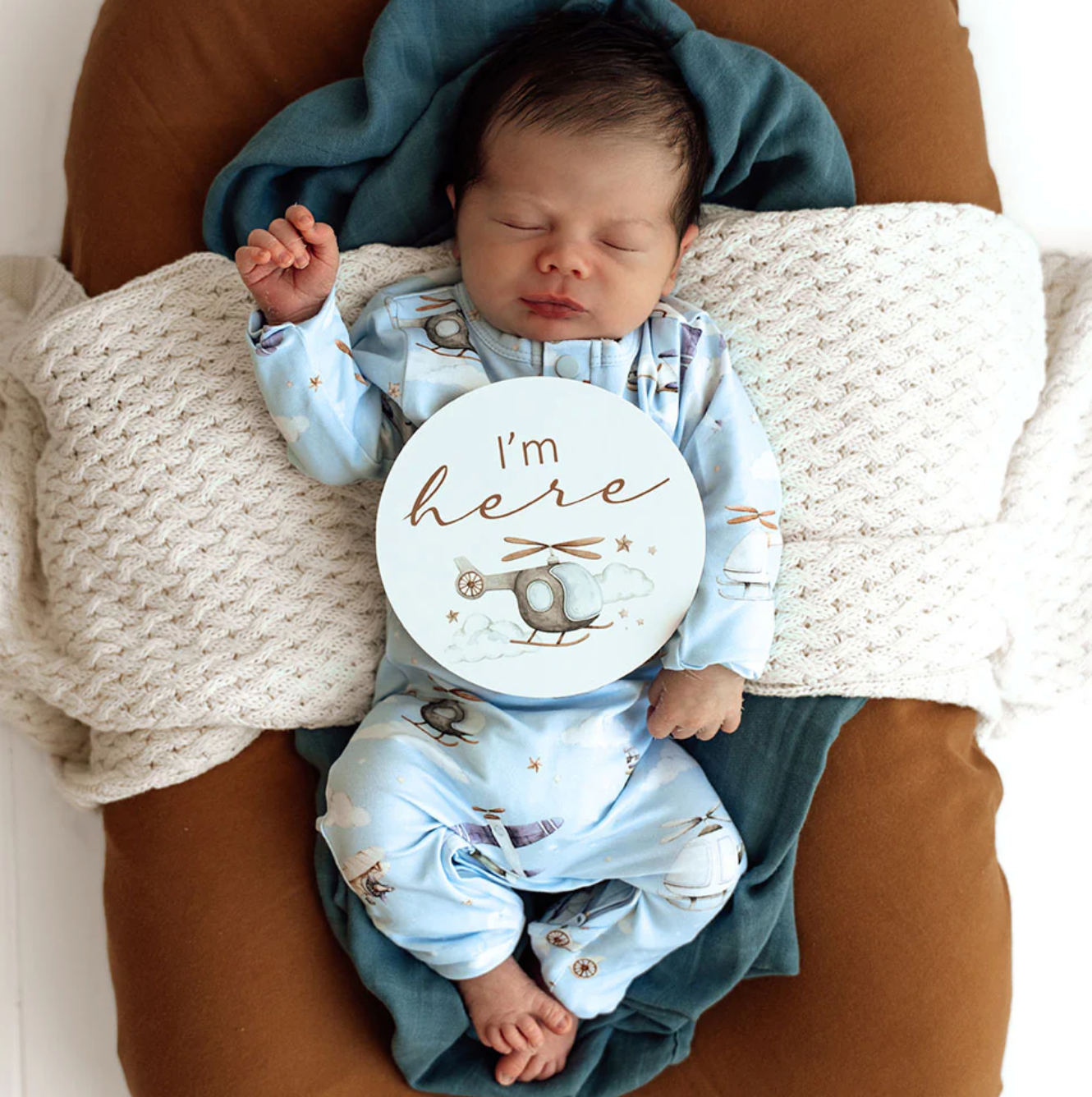 Capture your baby's milestone moments and document their 'firsts' in photographs to treasure for a lifetime with our Taking Flight Milestone Cards. Perfect for that birth announcement photo; they match beautifully with Snuggle Hunny's Taking Flight jersey & muslin wraps and organic clothes. 25 Reversible Cards.