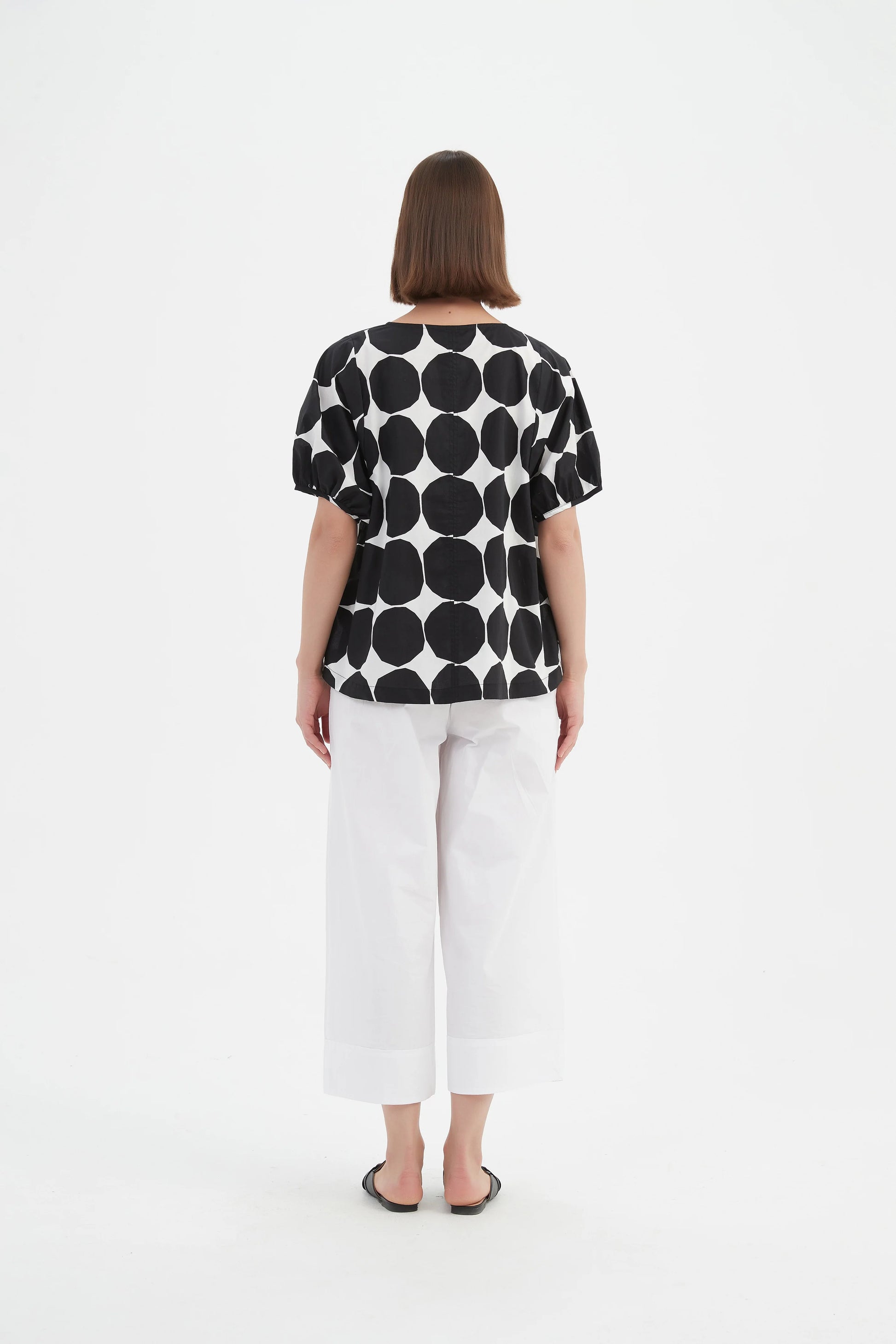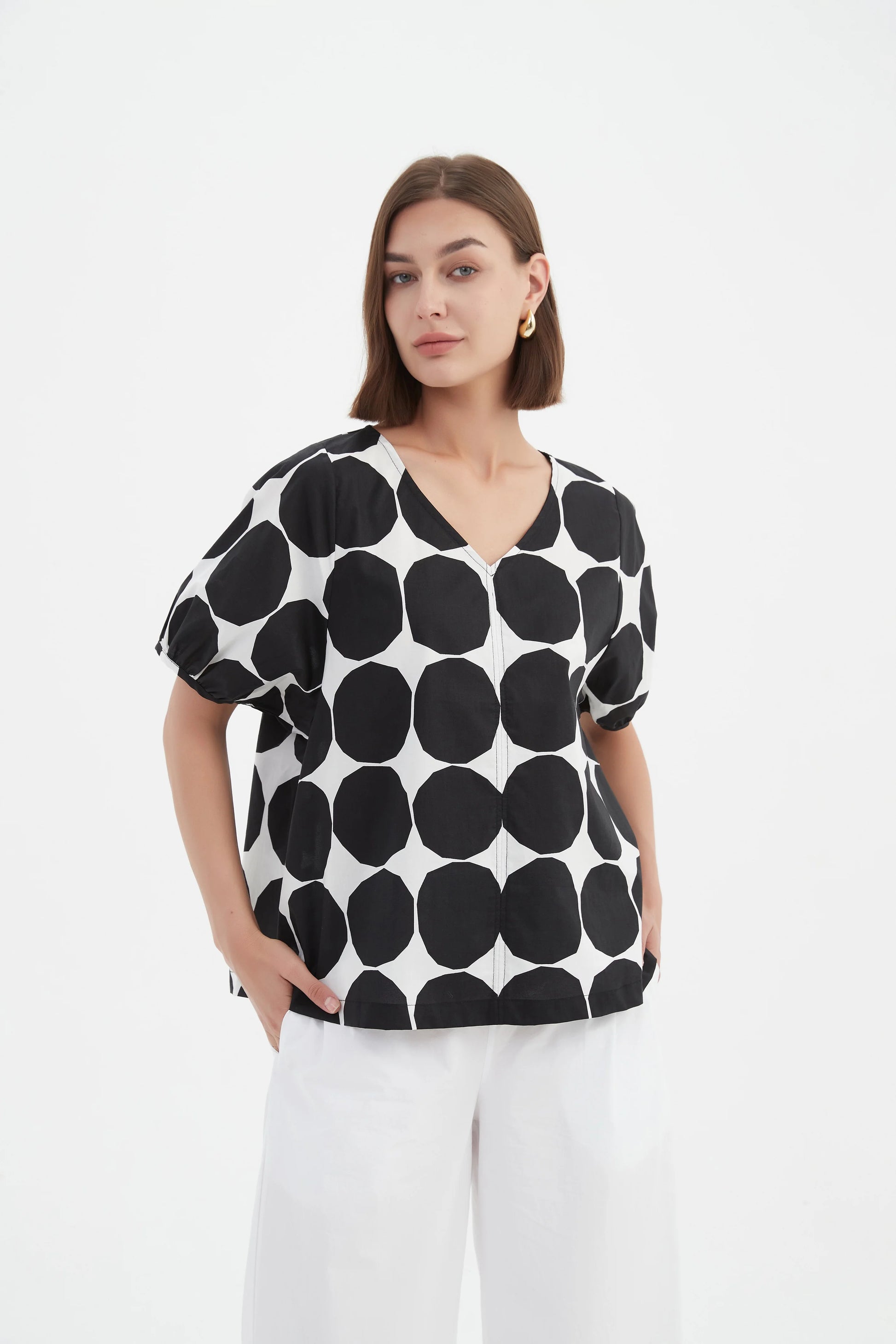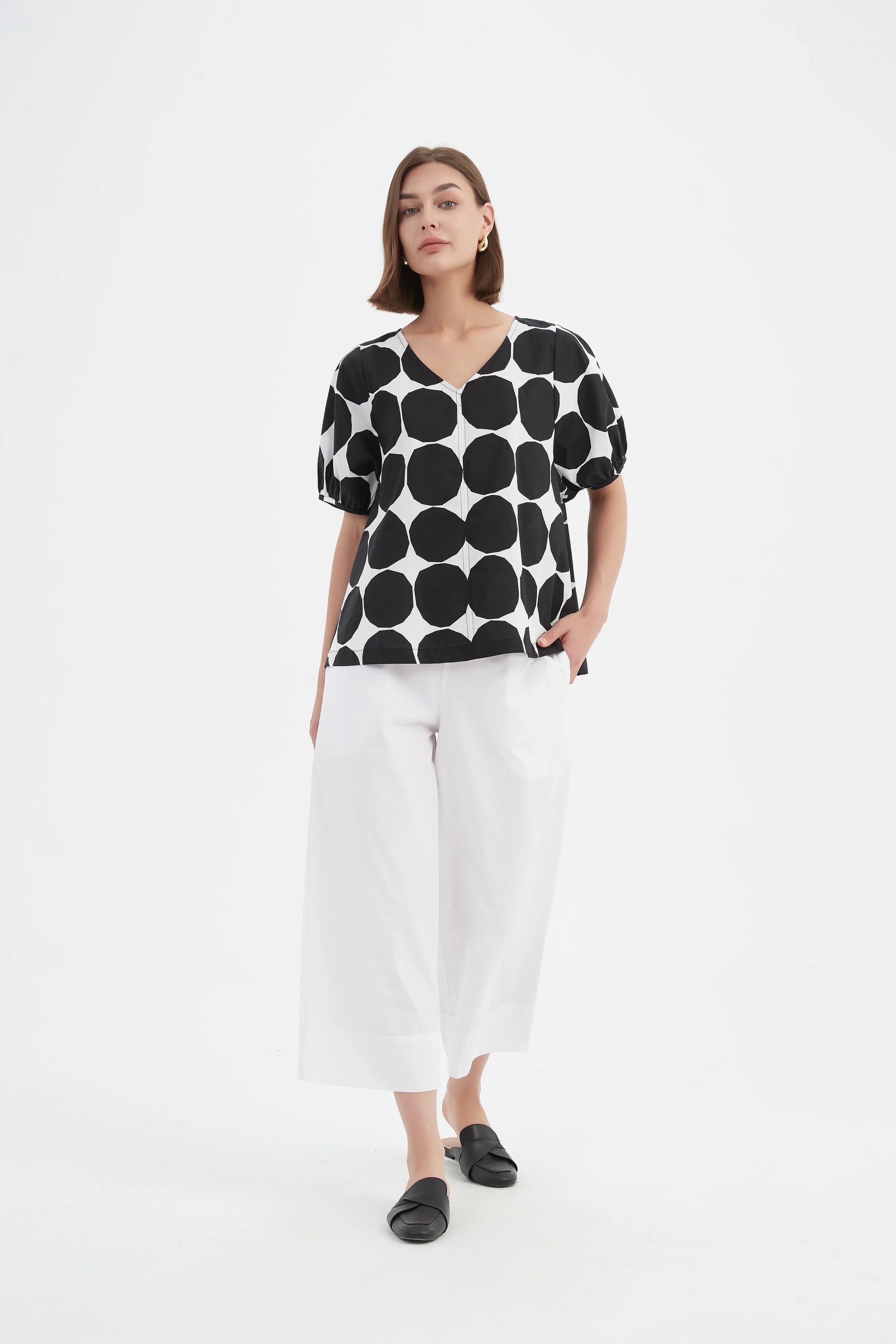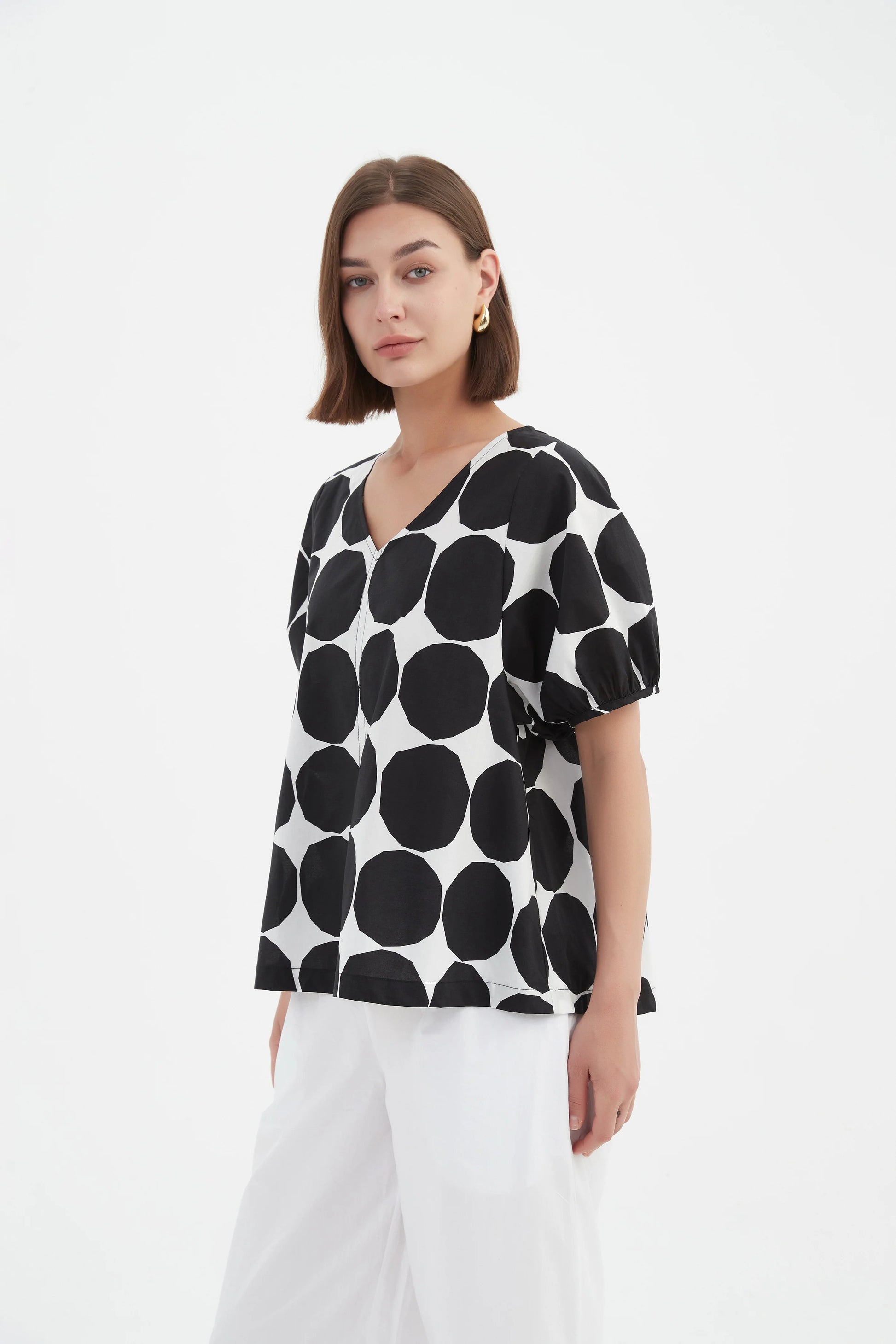 Elevate your wardrobe with our V Neck Bishop Sleeve Poplin Top. Crafted from premium cotton poplin, this printed top combines classic design with contemporary flair. Featuring a flattering V neckline and short bishop sleeves, it offers a perfect blend of comfort and style.