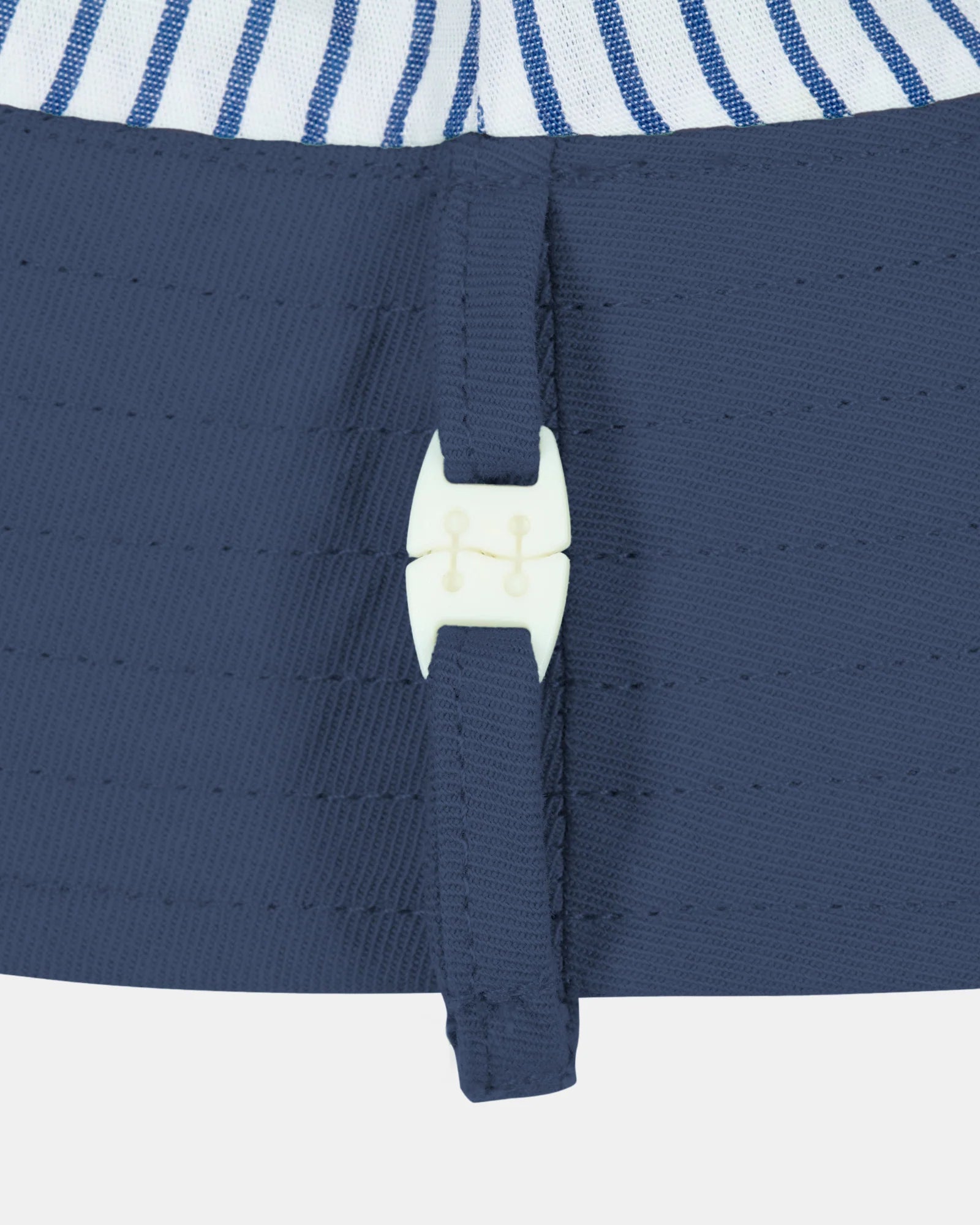 Toshi presents the classic Bucket Hat Billy, ideal for children of all ages. The Toshi bucket has a well-structured brim. The UPF 50+ UV rating indicates optimal sun protection. The chinstrap with soft cotton toggle secures the hat for ease of wear. A security release clasp on the chin tie is designed to enhance wearer safety. The classic Toshi bucket hat is crafted from the finest quality 100% cotton and is fully lined for additional comfort.