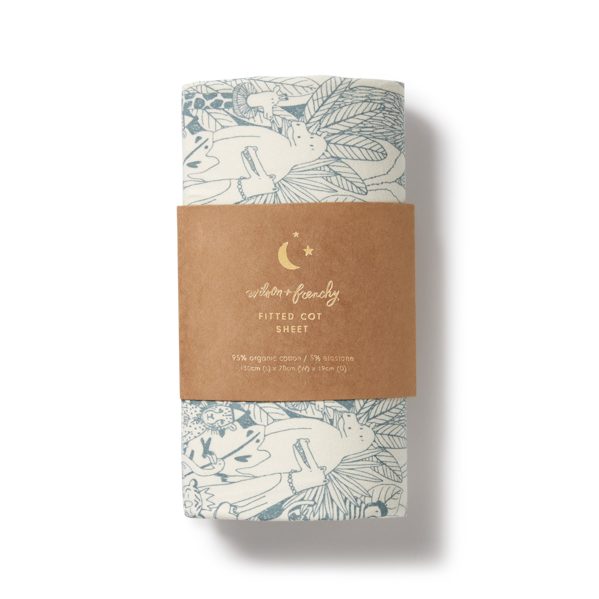 This fitted cot sheet by Wilson and Frenchy is made from organic cotton jersey and features a hand-illustrated all-over print. Completely breathable, it's perfect for your baby to sleep soundly at night. Plus, it's stretchy so it fits a range of cots, including Australian standard size as well as Boori cots.