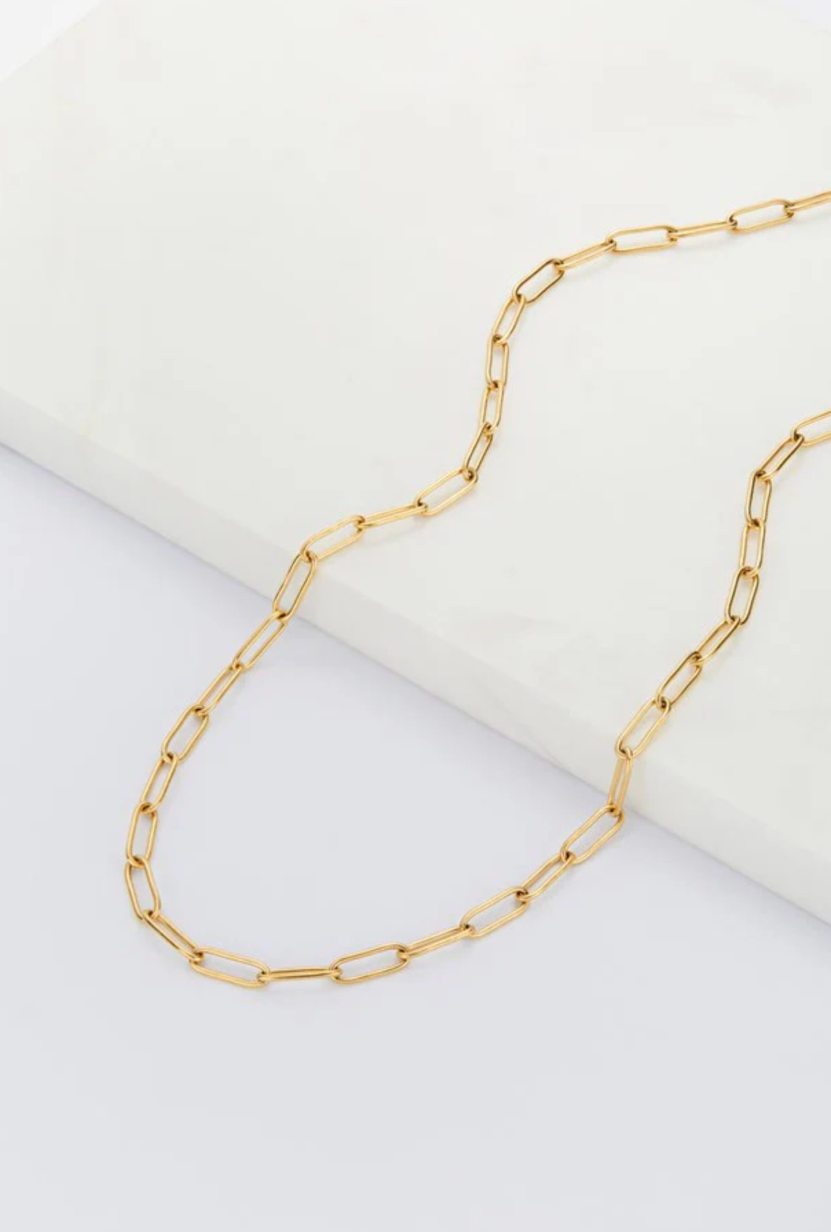 The Ruby Necklace, a versatile paperclip chain style necklace designed to hold your favourite charms or to be worn elegantly on its own. Crafted from durable stainless steel, this necklace is not only stylish but also waterproof, ensuring it retains its brilliance in any condition.